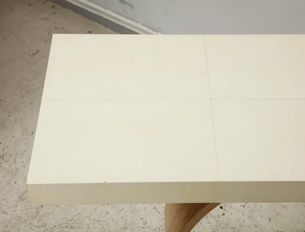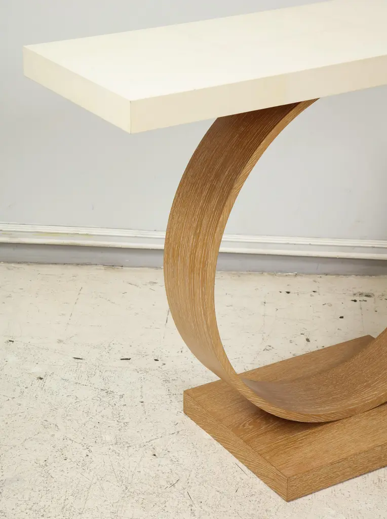 Bespoke Sculptural cerused oak and parchment console. Please view our other listings for this piece in various finishes.