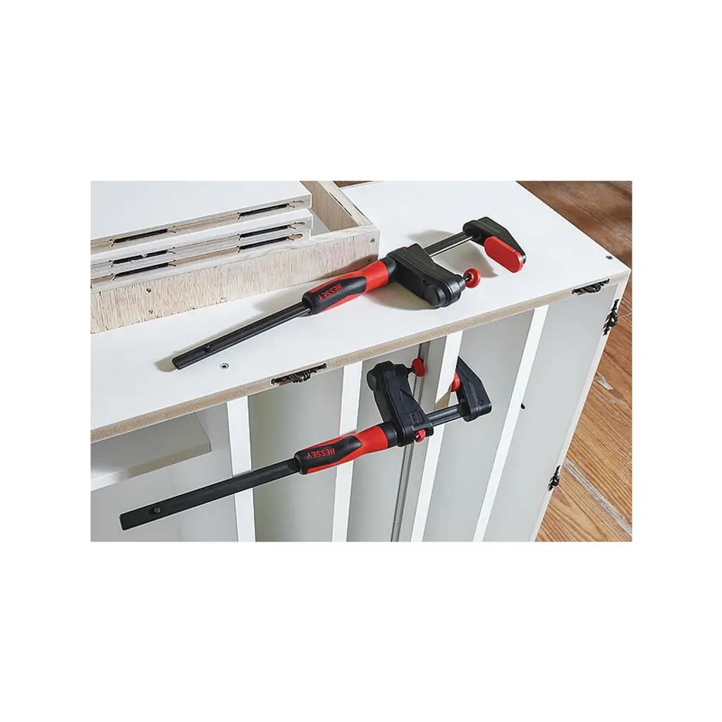 Bar Clamp, Bar Type Profiled Rail, Handle Style Screwdriver, Clamping Capacity 24 in, Clamping Force 450 lb, Throat Depth 2 3/8 in, Jaw Pad Type Swivel, Sliding Mechanism Bar Slide, Bar Thickness 3/4 in, Bar Material Steel, Function Clamping, Handle Material Plastic, Includes Removeable Pad, Spreading Capacity - Maximum Not Applicable, Spreading Capacity - Minimum Not Applicable