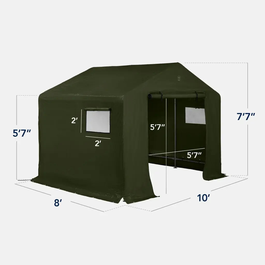 Best Choice Products 10x8ft Outdoor Fabric Storage Shed, Steel Frame, Dual Roll-up Zipper Doors, Window - Forest Green