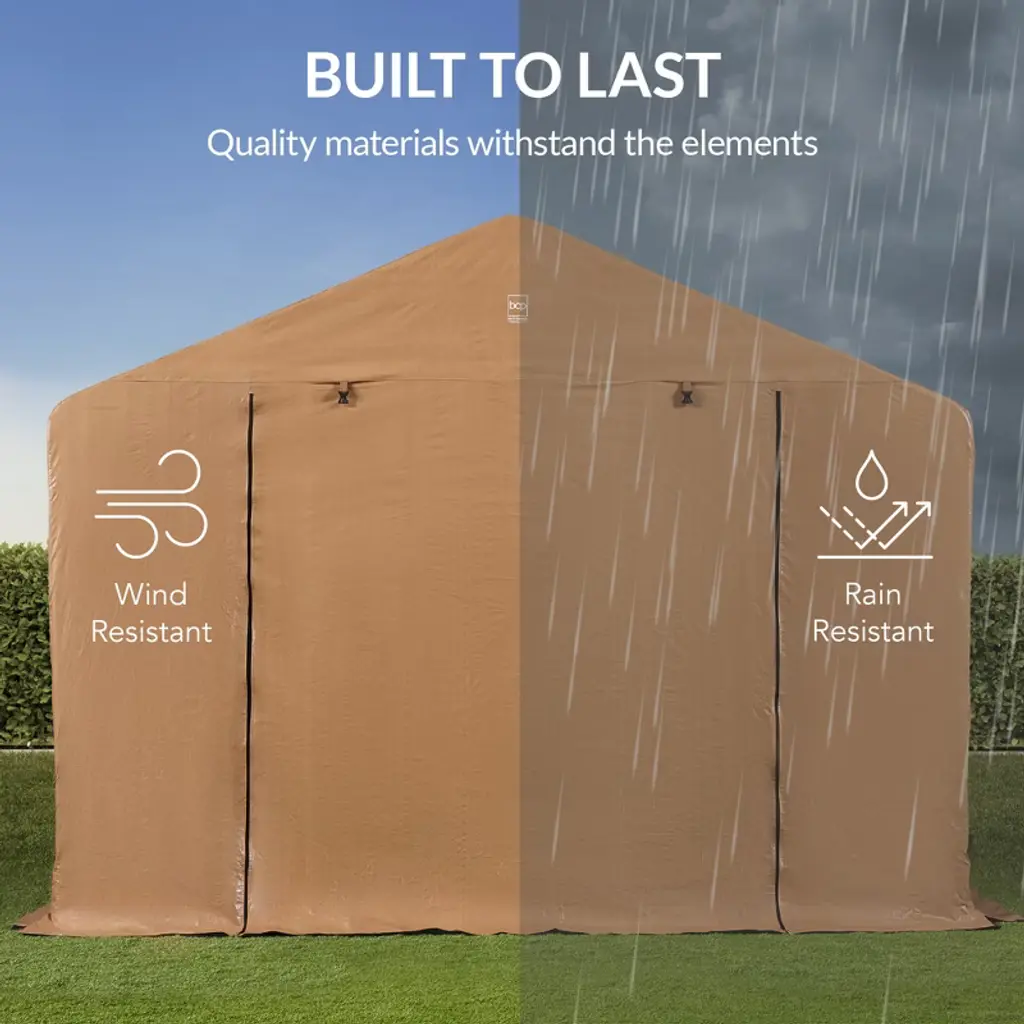 Best Choice Products 10x8ft Outdoor Fabric Storage Shed, Steel Frame, Dual Roll-up Zipper Doors, Window - Tan