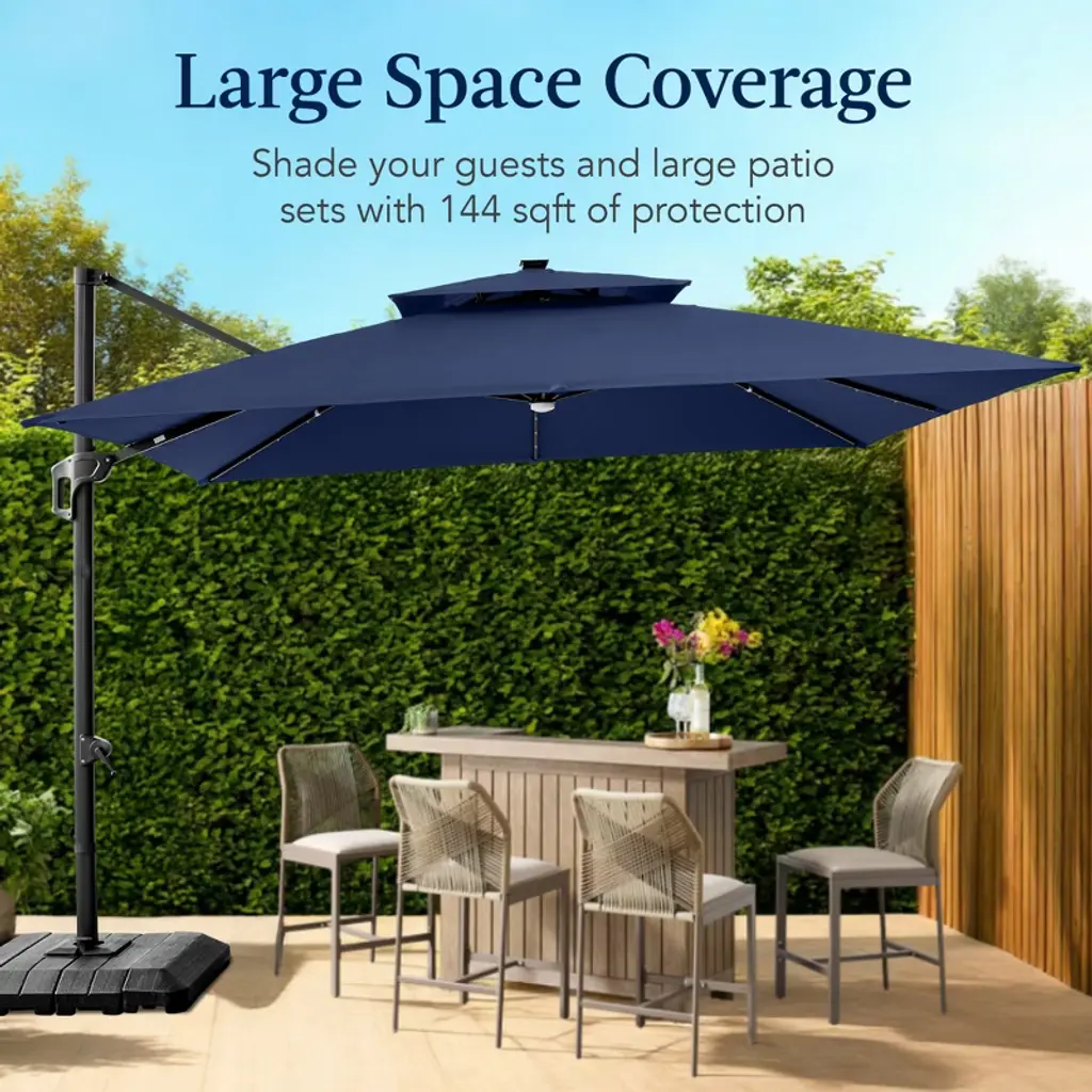 Best Choice Products 12x12ft 2-tier Square Outdoor Solar Led Cantilever Umbrella W/ 360-rotating Base Navy Blue