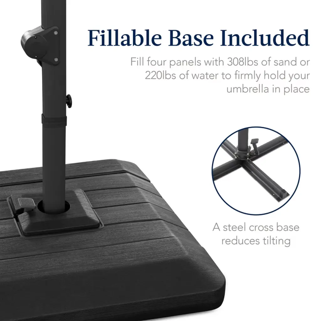 Elevate your summer shade with our 12x12ft 2-tier square outdoor solar LED cantilever patio umbrella! Included with a fillable base, this umbrella covers maximum space, with 144 square feet of protectionf from the sun's harsh rays. Fill the four panels with sand or water to firmly hold your umbrella in place; the steel cross base reduces tilting so you don't have to think about it twice. Ships and arrives in 2 separate boxes. Delivery times may vary per box.