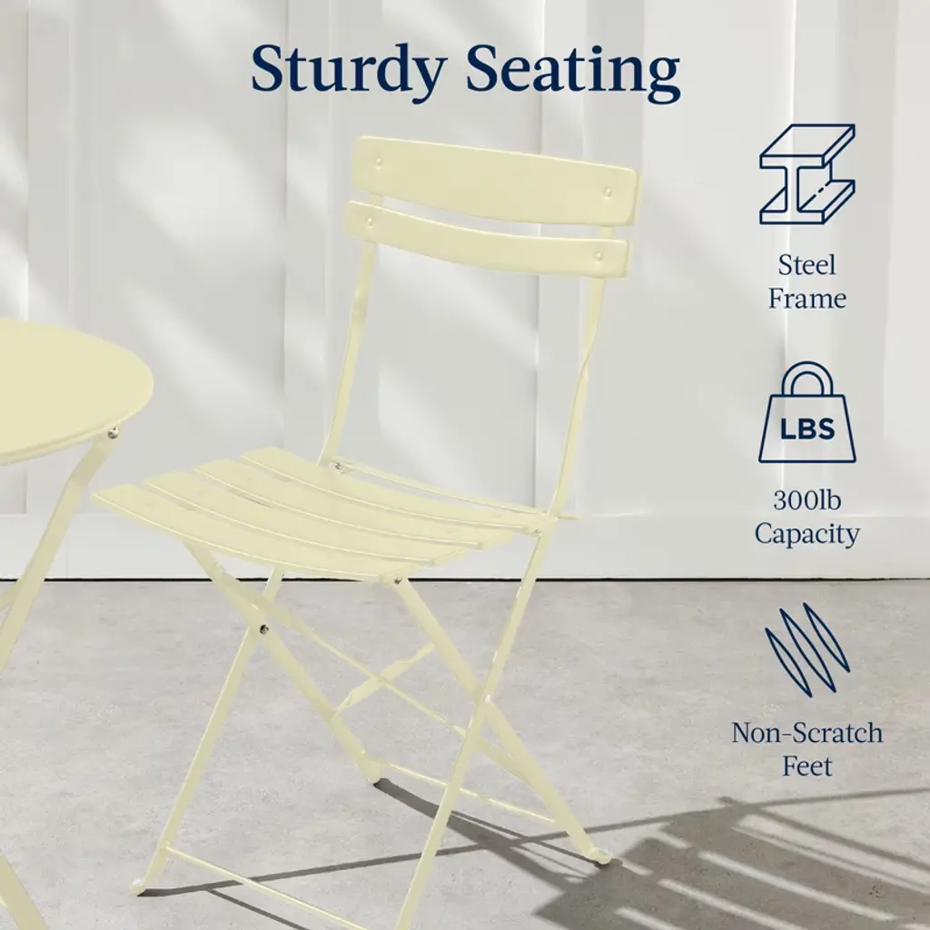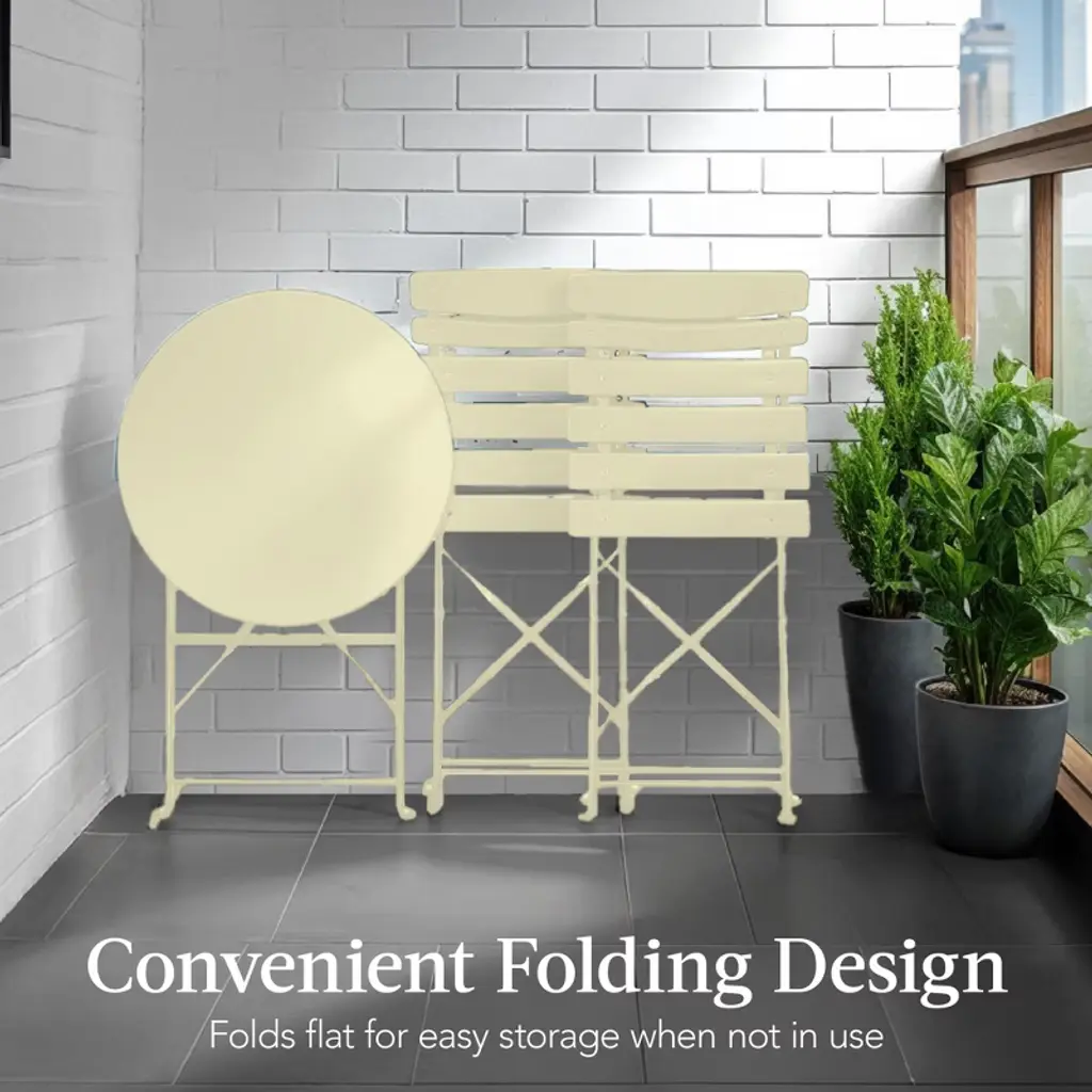 Best Choice Products 3-piece Small Bistro Set, Folding Patio Furniture Set Of 2 Chairs And Table - Cream