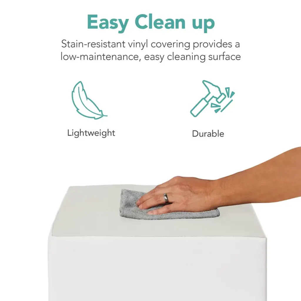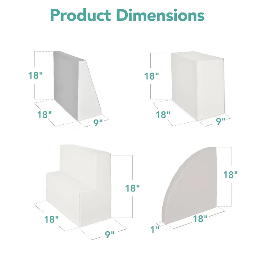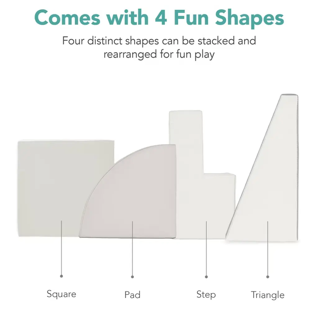 Stimulate and improve your child's development, motor skills and coordination with a foam padding that provides a light, durable surface for your child to play, build, and climb. Comes with 4 fun and colorful shapes; a square, a step, a triangle, and a pad. As your child plays, they'll develop their hand-eye coordination, gross motor skills, color recognition, and general coordination. This low-maintenance, stain-resistant vinyl covering provides an easy cleaning surface that is both lightweight and durable. This foam block set is made with safe materials that meet U.S. Federal Safety standards and is ASTM F963-17 and CPSIA certified making this a safe and fun option for playtime!
