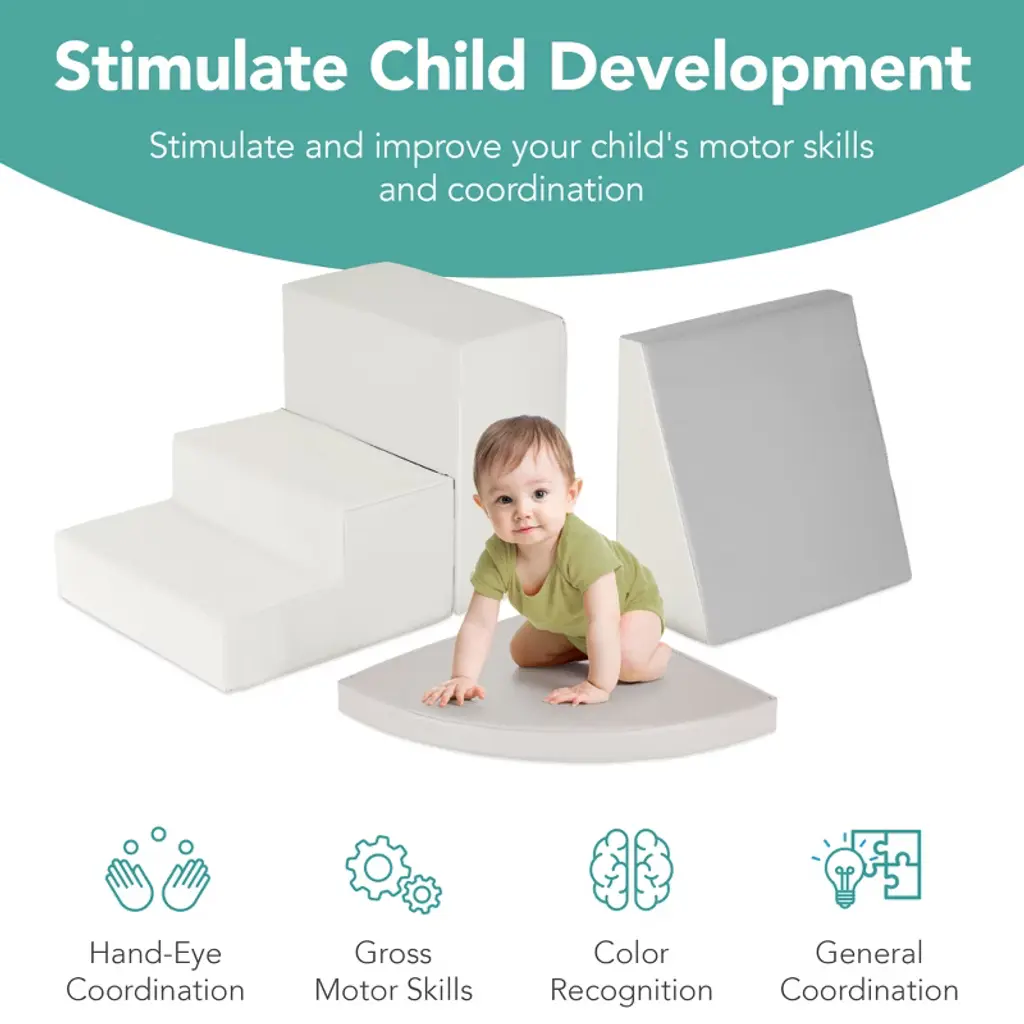 Best Choice Products 4-piece Kids Climb & Crawl Soft Foam Block Playset Structures For Child Development - Neutral