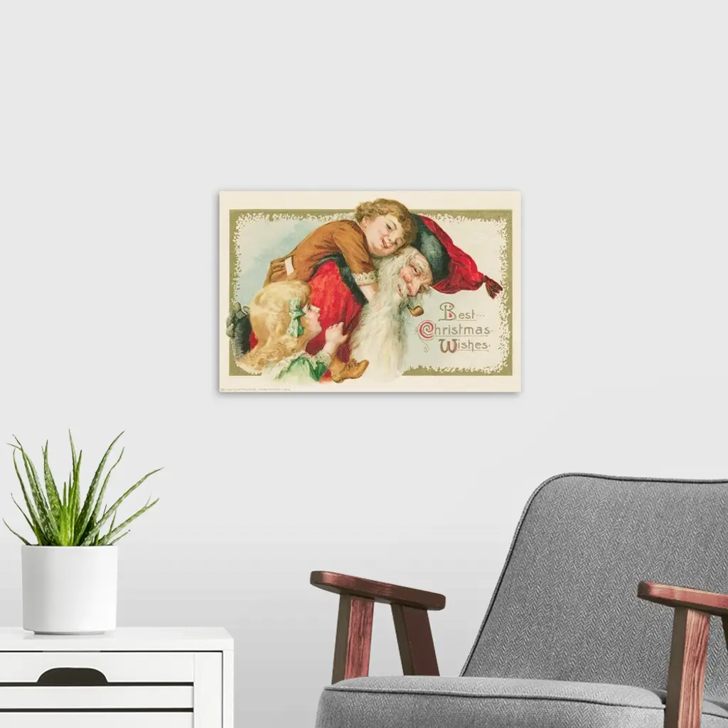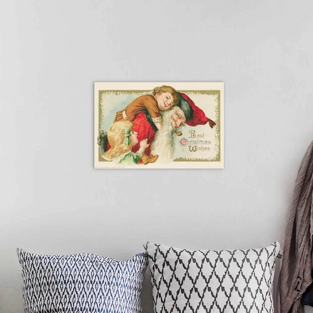 Best Christmas Wishes Postcard With Santa Claus And Children wall art for home and office decor. Discover canvas art prints, photos, mural, big canvas art and framed wall art in GreatBigCanvas.com's varied collections.