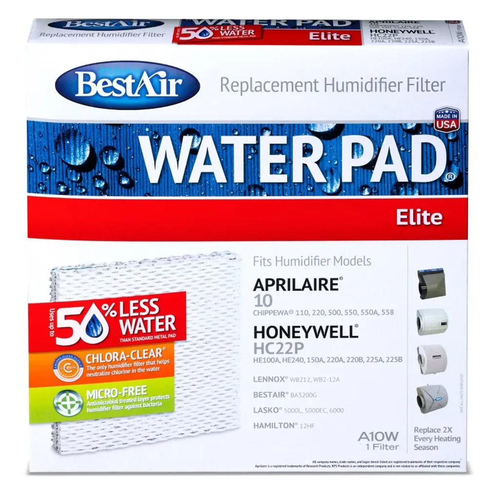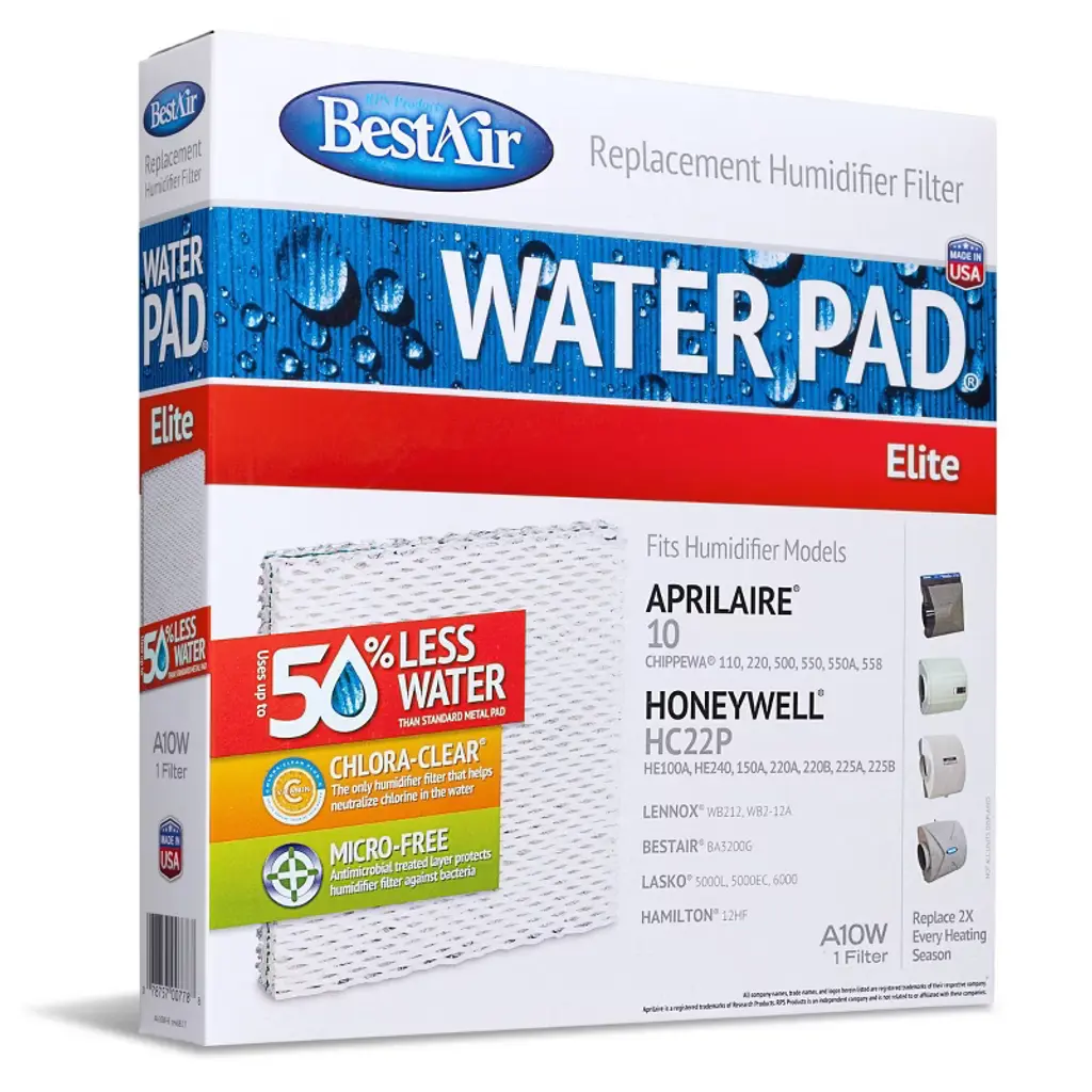 BestAir® is dedicated to providing a clean and comfortable indoor environment for everyone. We have a complete array of high quality humidification wicks, air cleaning filters, water pads and many other accessories, which will ensure that your indoor air quality will be the BestAir® that you and your family can breathe.Our Chlora-Clear® Plus C technology infuses a dechlorination agent treated with Vitamin C deep within our filter's wicking system to help neutralize chlorine. This is important because 90% of public water is treated with chlorine.Waterpad that fits: Aprilaire 110, 220, 550, 550A, 558 (10); Bryant HUMBBSBP 2212, 2312, 2412, HUMBASBP 2312, 2412; Carrier HUMCCSBP 2212, 2312, 2412, HUMBASBP 2312, 2412; Chippewa 220; Hamilton 12HF (EP037); Honeywell HE220A/B, HE225A/B; Lasko 5000L, 5000EC, 6000; Lennox WB2-12, WB2-12A; Totaline P110 SBP 2212, 2312, 2412