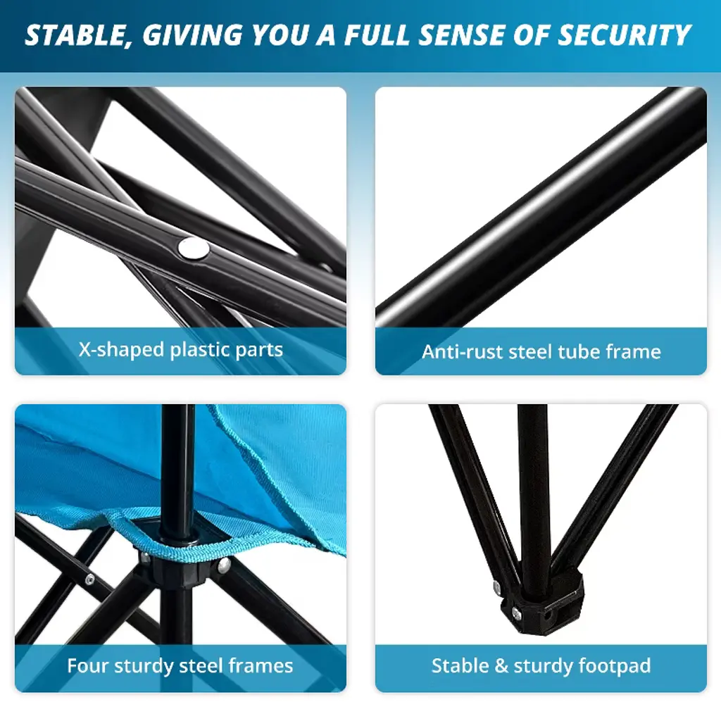 This Sailary outdoor camping chair is specially designed for outdoor enthusiasts. It is made of thick and sturdy steel pipes with an innovative X - shaped reinforcement design, paired with four heavy - duty steel frames, making it stable, durable, and capable of bearing a load of up to 225 pounds. The ergonomic design provides an ultimate comfortable sitting experience. The fabric is tear - resistant, breathable, waterproof, and easy to clean, withstanding the changeable outdoor environment. It is equipped with a cup holder, a storage pocket for items like mobile phones, sunglasses, and magazines, as well as a waterproof bag, meeting various storage needs. It can be easily unfolded and folded in just a few seconds, and comes with a sturdy nylon storage bag, being compact and lightweight for easy carrying and storage. It is an ideal choice for outdoor activities such as camping, watching sports events, and fishing.