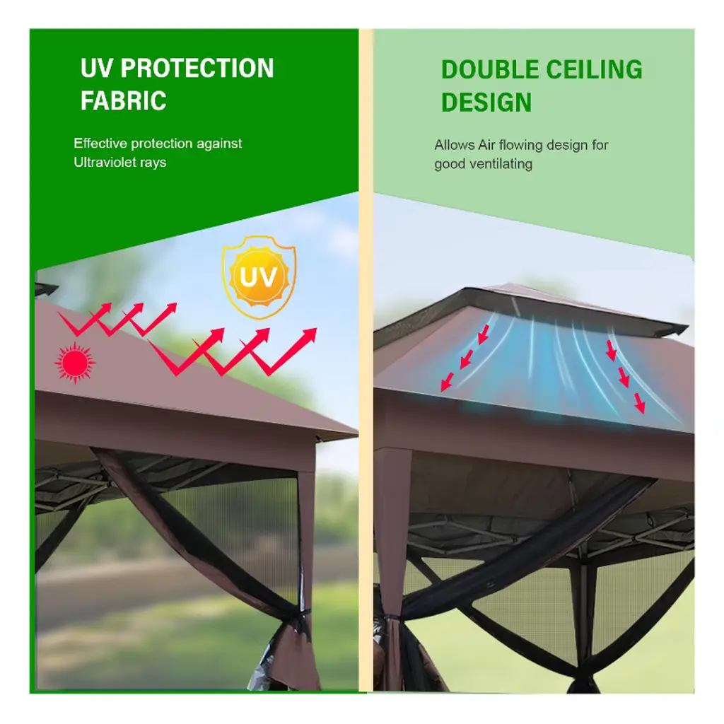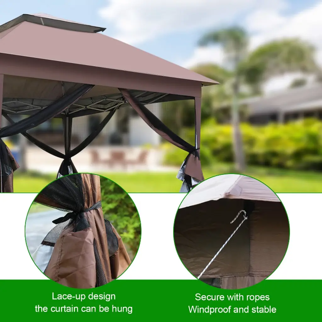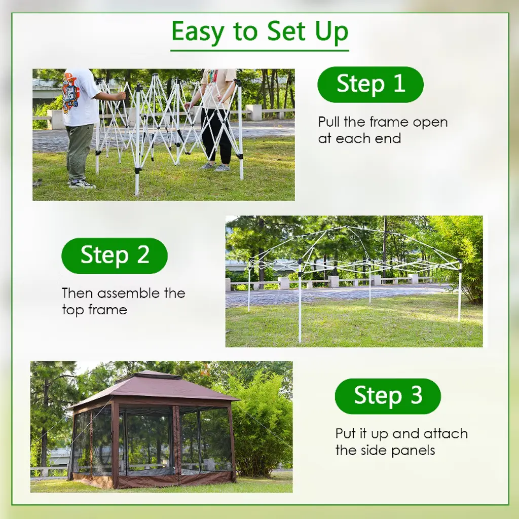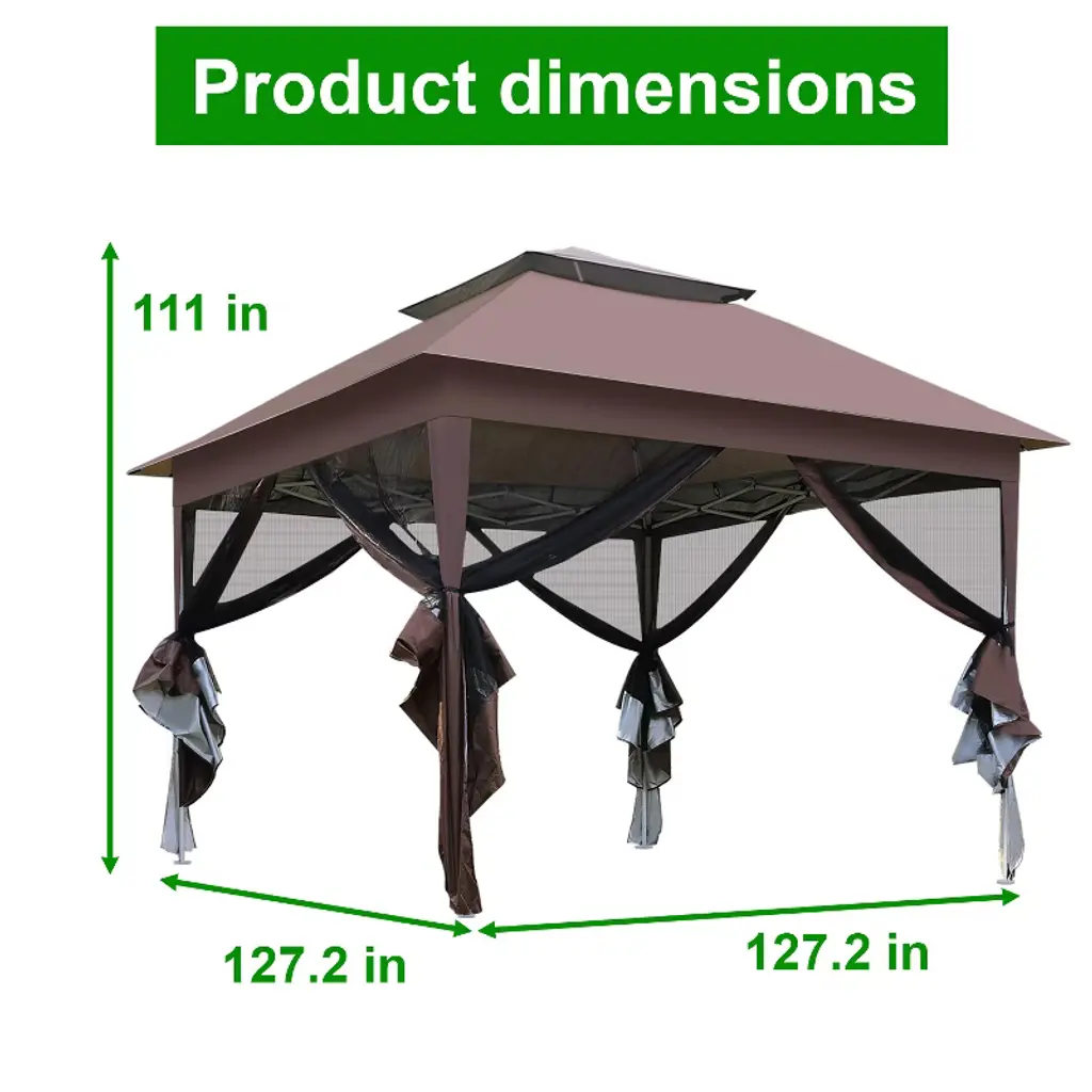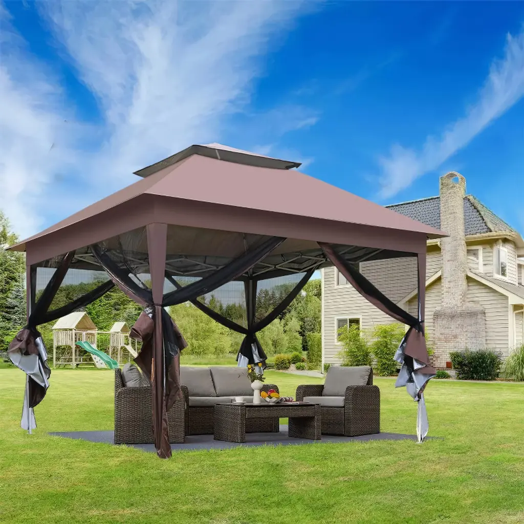 Bestmassage 10.5ft Outdoor Pop-up Gazebo With Mosquito Netting And Double Roof, Brown