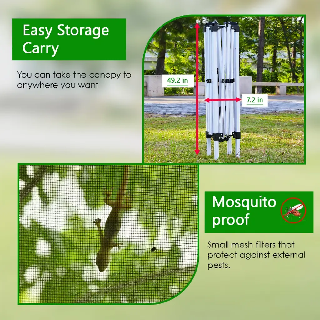BestMassage Pop-Up Gazebo is portable and versatile, perfect for parties, backyard events, travel, or family activities. It comes with a carrying bag for easy transport and storage, allowing you to set it up anywhere, from parks to lakes. The mosquito netting ensures a bug-free experience, making it ideal for outdoor relaxation. Simple to assemble and disassemble, this canopy is a convenient solution for shade and protection.