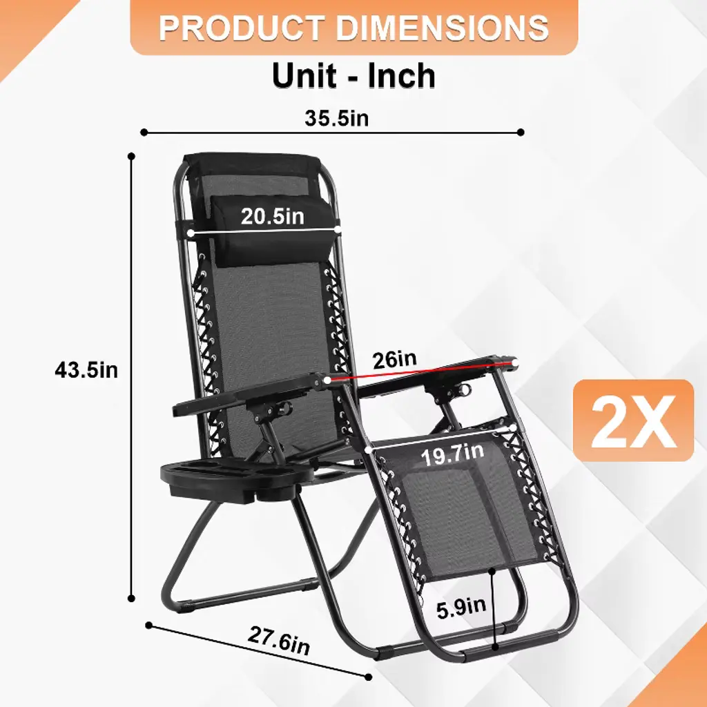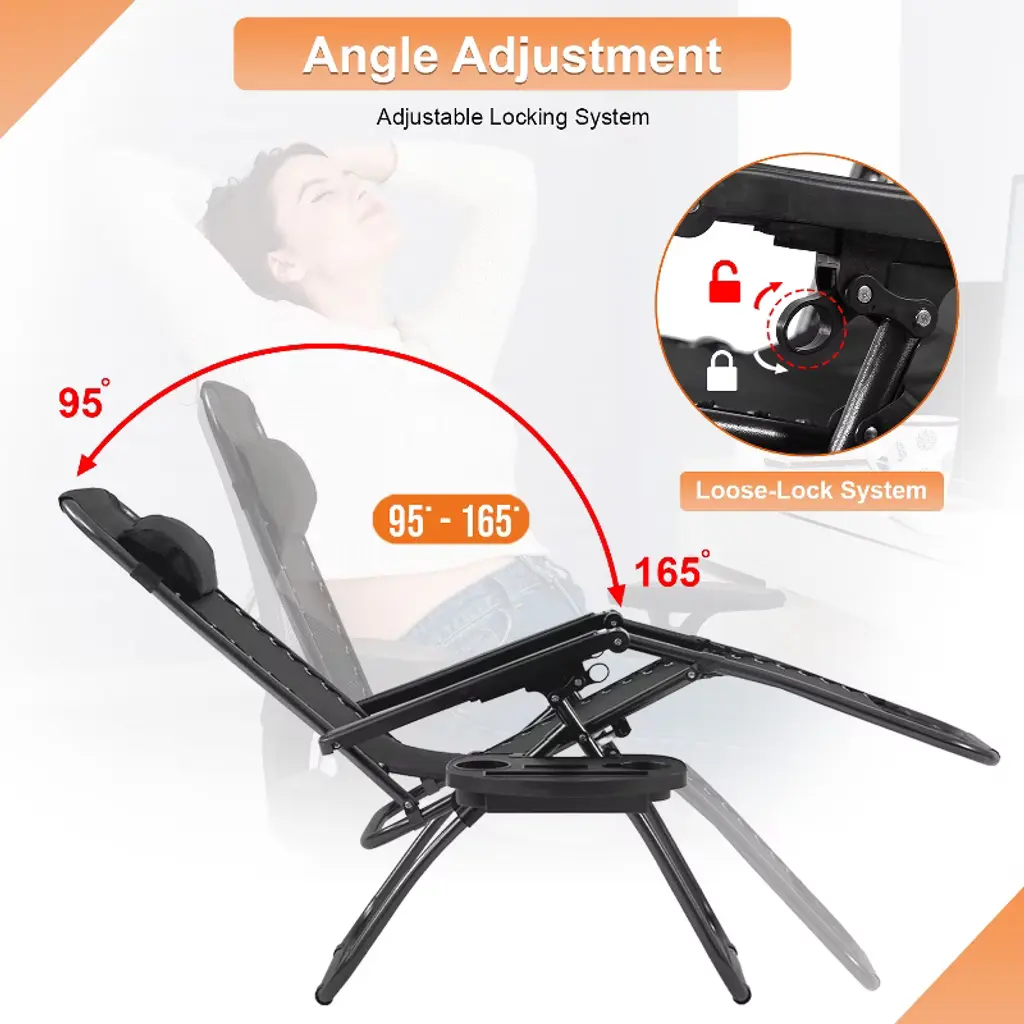 Bestmassage Zero Gravity Recliner Outdoor Adjustable Folding Recliner Set Of 2, Black