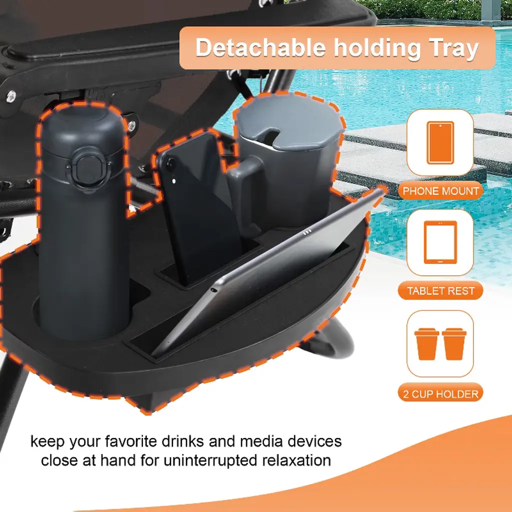 BestMassage Set of 2 Zero-Gravity Recliners is perfect for outdoor relaxation, featuring durable 550g textile fabric that is breathable, lightweight, and weather-resistant. The chairs offer adjustable reclining positions and a supportive headrest for optimal comfort, cradling your spine and relieving pressure. Built with a strong yet lightweight painted steel frame, they can support up to 114 kg (251 lb) and are easy to fold and store. Each chair includes a convenient cup holder tray for drinks and small items, making them ideal for patio, backyard, or poolside lounging.
