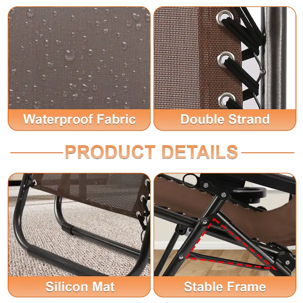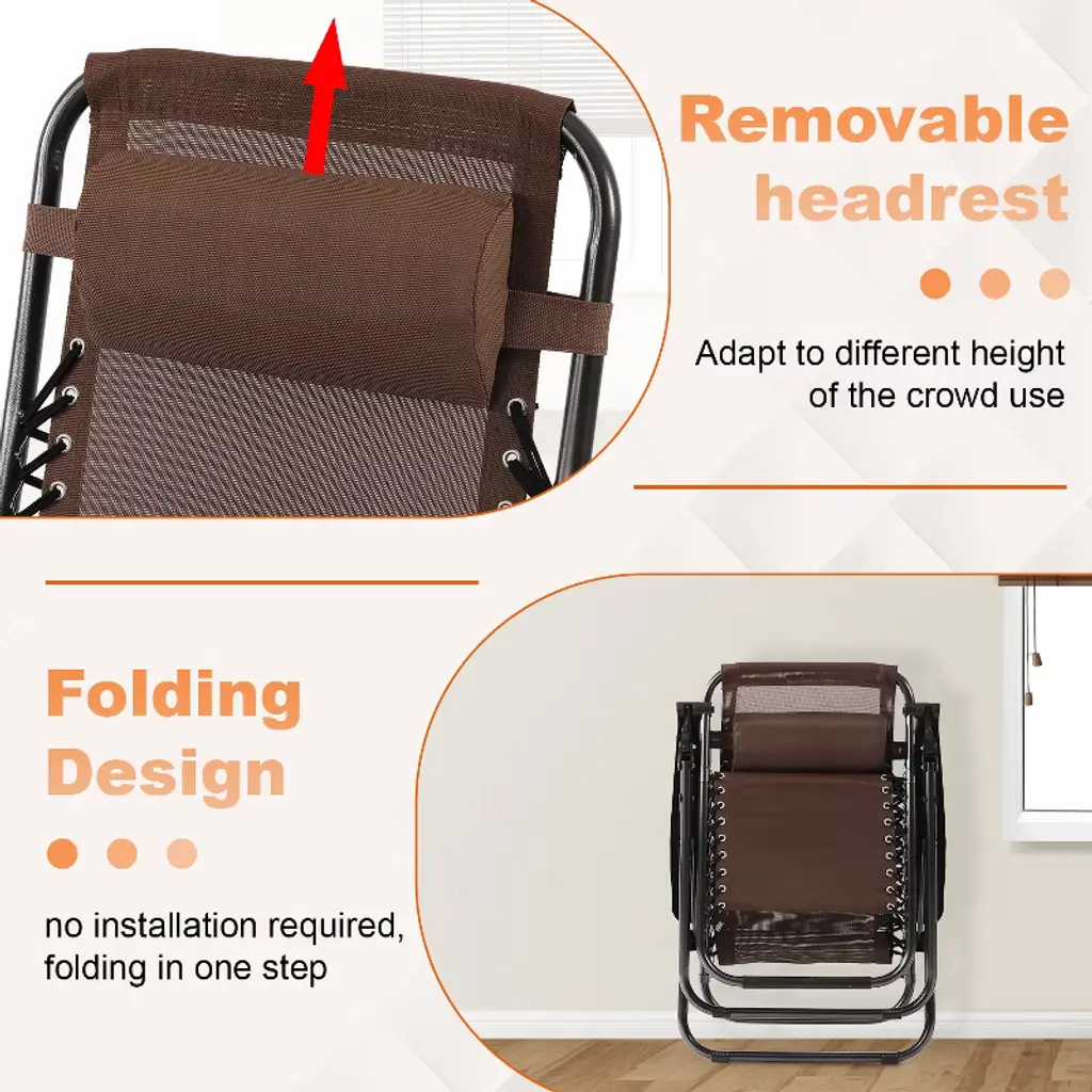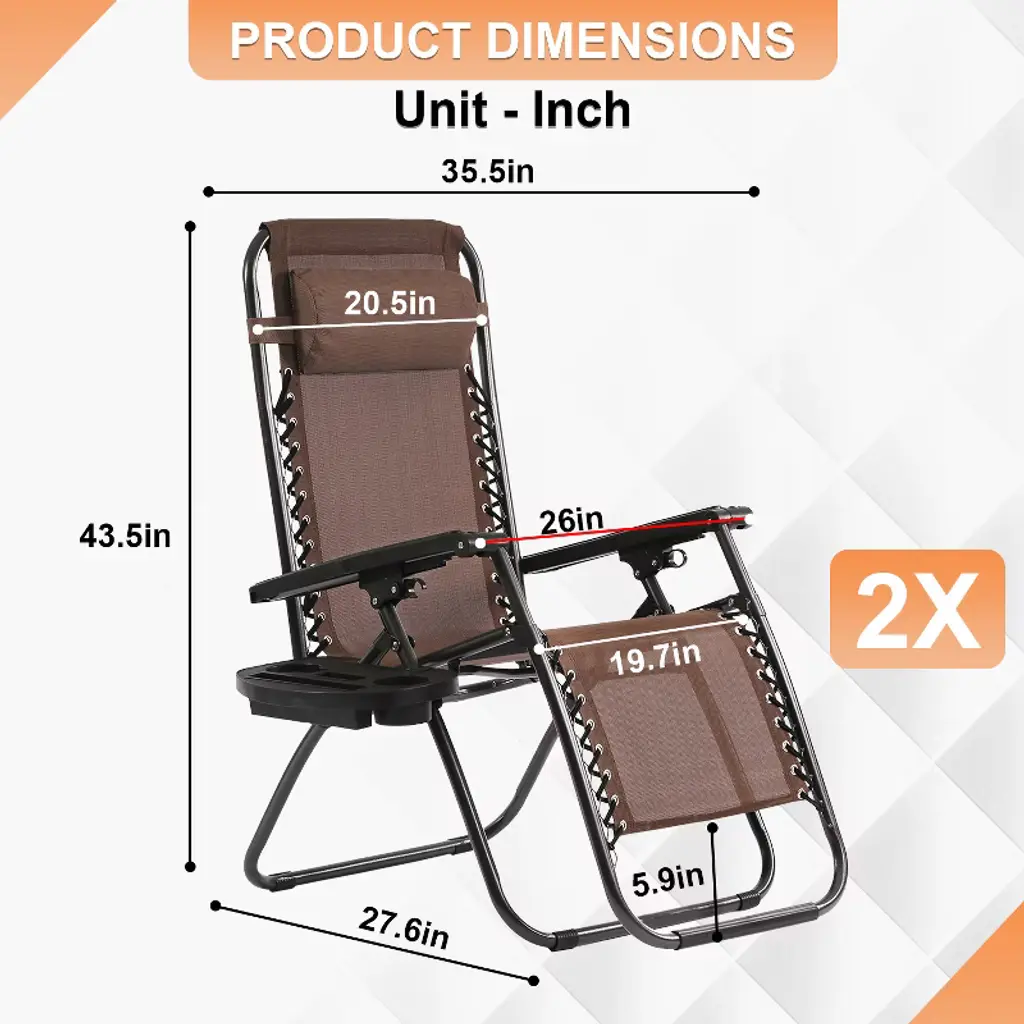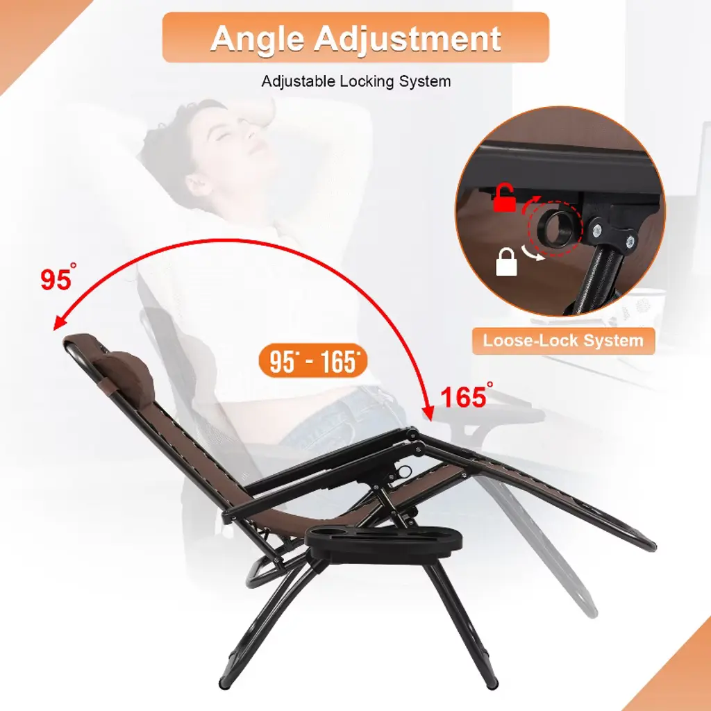 Bestmassage Zero Gravity Recliner Outdoor Adjustable Folding Recliner Set Of 2, Brown