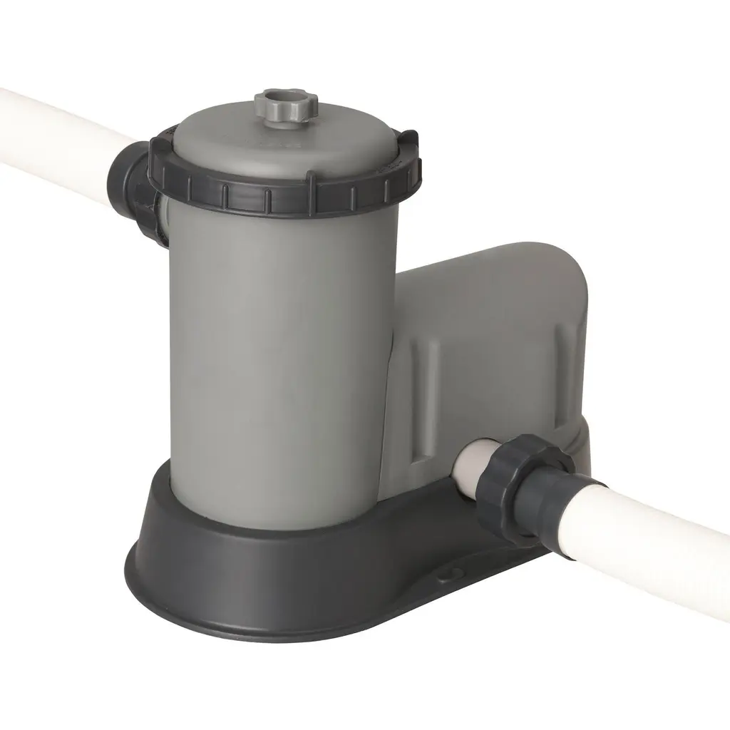 With the Bestway 14ft x 8ft x 40in Power Pool Set w/ Cleaning Vacuum & Maintenance Kit, you have everything you need for an above ground pool in your backyard. This above ground pool also includes filter cartridges for cleaner water. It even comes with a chemconnect chlorine filter built to dispense chlorine consistently through your pool. That way the Bestway Power Steel Swim Vista can offer fresh feeling water for the whole summer. The Bestway Deluxe Swimming Pool Cleaning Kit is a great addition to any above ground pool or pool maintenance set. The kit includes a vacuum and a 9-foot pool skimmer that will clean out the dirt and debris inside your pool. The kit comes with an adapter to connect the vacuum to any Bestway pools and filter systems and works best with a filter pump with a 530 gallons/hour flow rate. The vacuum and skimmer are ideal for ground pools 15 feet and below. For simple, but effective, ways to clean your above ground pool go with the Bestway 14ft x 8ft x 40in Power Pool Set w/ Cleaning Vacuum & Maintenance Kit. This package includes Bestway 14ft x 8ft x 40in Power Pool Set w/ Cleaning Vacuum & Maintenance Kit Easy-to-assemble oval-shaped swimming pool adds a fun attraction to your backyard Side walls and the wall band are built of Tritech material to resist wear and stand up to all weather conditions Tritech material encases a layer of high-quality polyester mesh between two layers of strong PVC Seal & Lock System provides a secure pipe connection to guarantee the frame holds up to summer fun Garden hose adapter connects to the drain plug for stress-free draining to any location Mosaic print lines on the interior create an elegant look that blends with backyard aesthetics PVC wall support band wraps around the pool for extra support Prefabricated hardware makes assembly simply with no tools required Includes filter, ground cloth, cover, ladder, garden hose drain adaptor, and Chemconnect dispenser Specifications: Pool type: Above-ground Material: Steel Capacity: 3,528 gallons Pool footprint: 161 square feet Frame height: 4 feet Part number: 56717E-BW Color: Brown Dimensions (L x W x H): 14 x 8 x 3.3 feet Weight: 201 pounds Manufacturer warranty: 90-day warranty Bestway Above Ground Pool Cleaning Vacuum & Maintenance Accessories Kit Super-easy assembly Includes 110-inch adjustable aluminum pole for large diameter pools Removable and reusable debris and leaf bag Includes multiple adapters for connections to all Bestway pools and filter systems Extra long vacuum hose is 24.5-foot long with 1.25-inch diameter Multi-functional Pool surface skimmer: works with the filter pump to clean floating leaves and other debris Pool vacuum: attaches to filter pump to clean pool walls and floor Pool skimmer: manually clean floating debris For use with all above ground pools except steel wall pools Vacuum fits the filter pump with 800 gallons per hour flow rate and above Durable and corrosion-proof plastic material Skimmer has a durable, washable mesh netting Part number: 58237E-BW