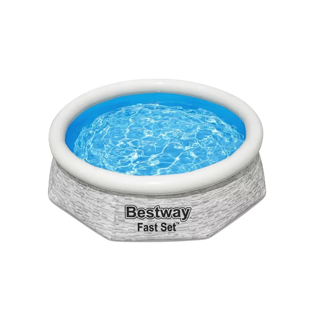 Dive into summer with the Bestway 8-Foot by 24-Inch 497-Gallon Pool Set with Filter Pump, a fantastic addition to your outdoor fun. With its generous dimensions, this pool offers a spacious oasis for you and your family to cool off on those scorching hot days. Boasting a remarkable water capacity of 497 gallons (1,880 liters), you'll have plenty of room to splash around and beat the heat. Fill and Rise pool technology ensures a hassle-free setup by choosing a level surface, inflating the top ring, and watching in amazement as the pool effortlessly rises with each drop of water, making assembly a breeze. The durability of our enhanced DuraPlus liner is unmatched. It's designed to withstand the rigors of outdoor play and resist punctures, providing peace of mind during all the summer festivities. Crafted with heavy-duty PVC and polyester side walls, this pool is built to last, season after season. To enhance stability, the inflatable top ring provides structural support for the liner, ensuring that your pool maintains its shape and integrity. When the summer fun winds down, this kiddie pool is a cinch to take down and store, making it a practical choice for any backyard. For added convenience, an underwater adhesive repair patch is also included in the complete package so you can easily fix any unexpected mishaps. This Summer fun essential also comes with a 330-gallon filter pump, ensuring that your water is kept crystal clear. This summer, create lasting memories when you dive into endless fun with your loved ones while knowing you've got a durable, easy-to-assemble, and reliable pool by your side. Make your backyard the ultimate summertime destination with the Bestway 8 Foot by 24 Inch Round Inflatable 497-gallon Pool with Filter Pump.