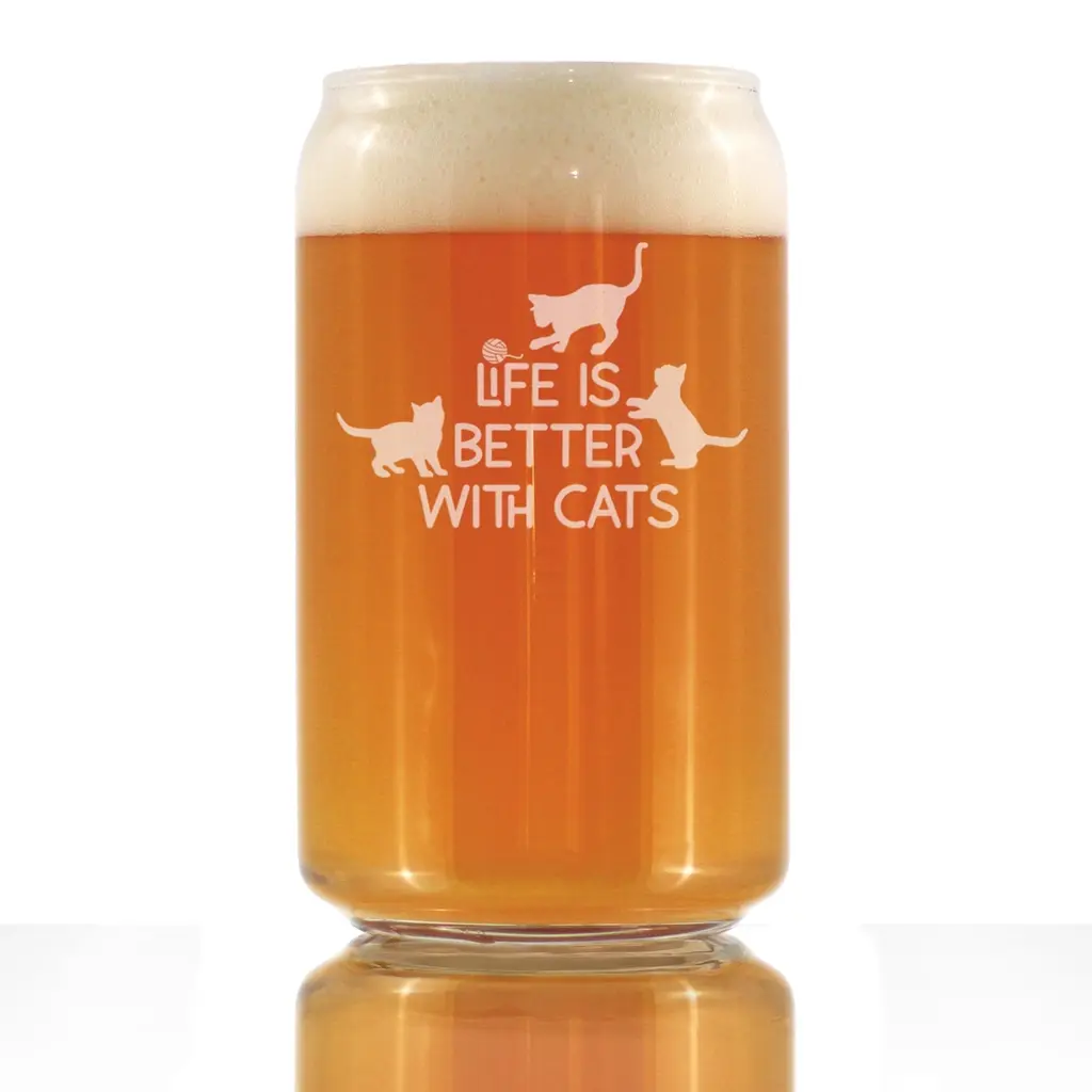 Better With Cats - Beer Can Pint Glass - Funny Cat Gifts - 16 Ounce - Clear