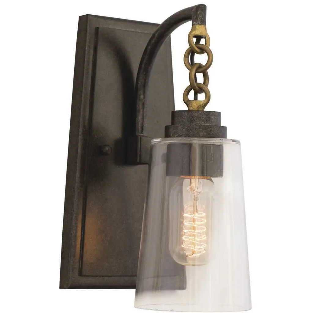 From the Bexley collection this Transitional 5Wx7H inch 1 Light Vanity will be a wonderful compliment to any of these rooms: Bathroom; Vanity; Spa; Powder Room Dry Power: Hardwire Lamping: 1 x 100W Incandescent Bulbs Included: N The Bexley Collection showcases the simplicity and grace of industrial materials. While Kalco''s exclusive Vintage Iron finish and Clear Seeded Glass shades look as if they was repurposed from a factory they exist in a way that is uniquely elegant and only adds to the attractive quality of these pieces.