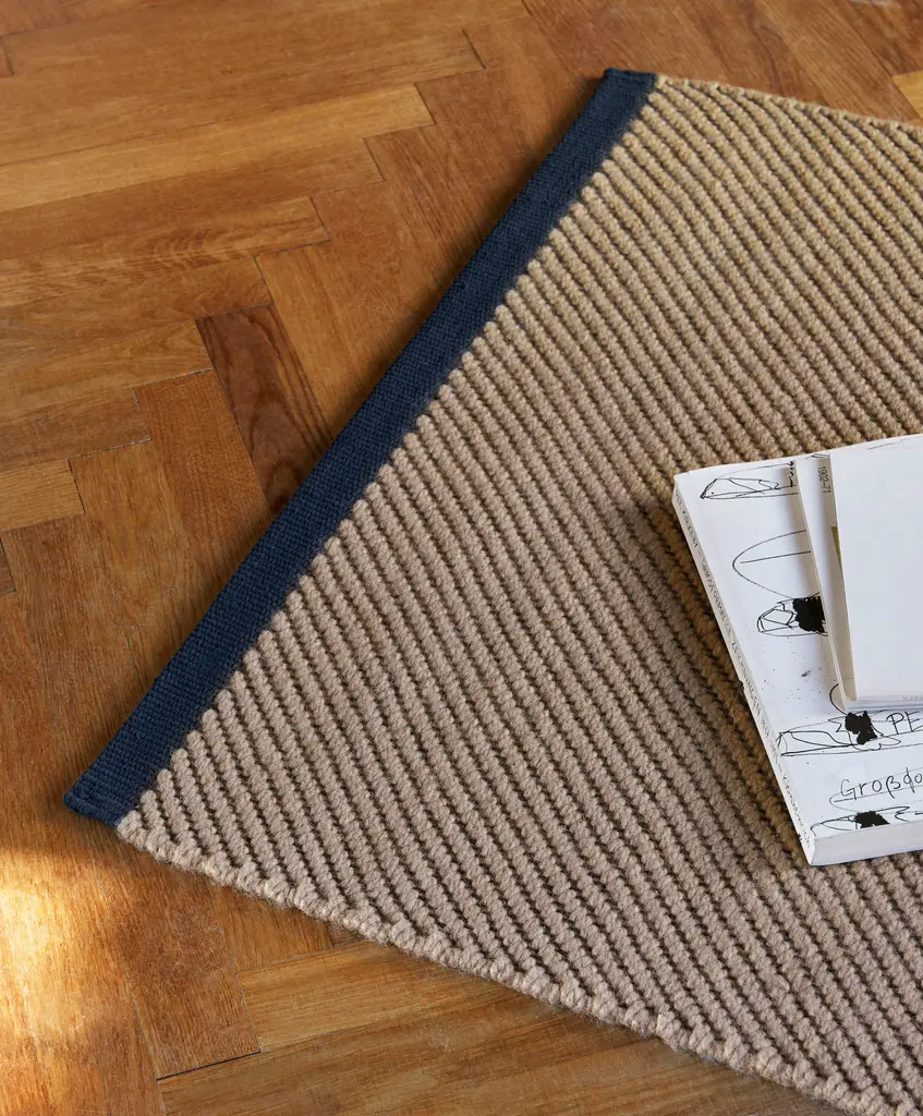 Weaving together two colors for rich dimension and texture, the Bias Rug is made from a blend of durable New Zealand wool and soft cotton that stands up to high-traffic areas. It's finished with contrasting edges and made in India.