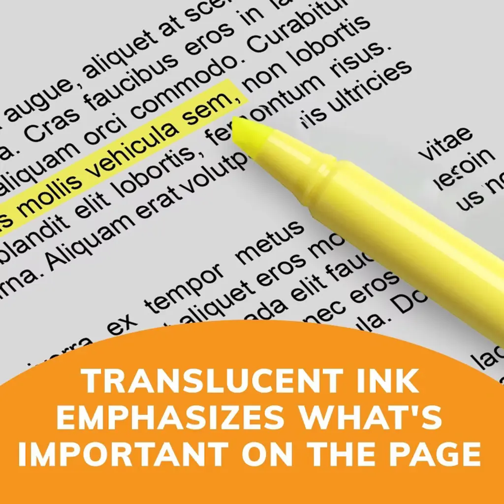 Whether you’re organizing notes or underlining passages in a textbook, BIC Brite Liner Highlighters make it fun, colorful, and easy! These highlighters come in an assortment of highly visible, fluorescent highlighter colors, including yellow highlighters, to make color coding a breeze. Each highlighter features a chisel tip that allows you to seamlessly switch between broad markings and precise, fine lines to effectively callout or emphasize certain information. And for those long nights studying or at the office, you can still count on BIC highlighters to perform without drying out when left uncapped for up to eight hours. Made in the U.S.A. of U.S. & Foreign Parts, they are also ACMI approved and non-toxic. This 5-count pack of BIC Brite Liner Highlighters come in a variety of super-bright fluorescent ink colors including yellow, pink, orange, green, and blue that are sure to bring a vibrant touch to your writing needs!