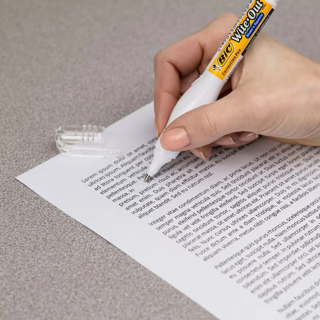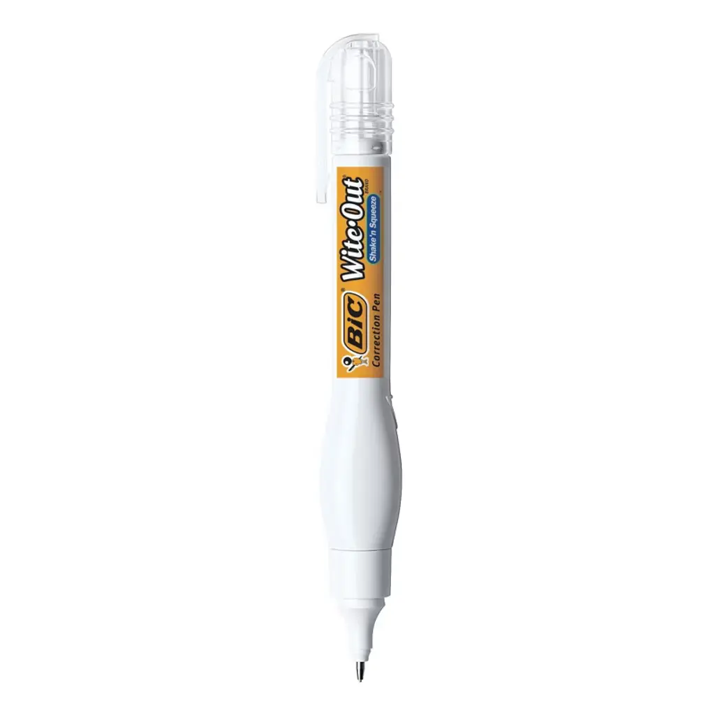 Make fast, easy and precise corrections on even the toughest errors with BIC Wite-Out Brand Shake 'n Squeeze Correction Pen. This convenient Wite-Out Brand pen features a needle-point tip for accuracy and a soft squeeze barrel for maximum fluid control. Additionally, the correction fluid dries quickly, so you can instantly write or type your corrections over it. One pack contains one BIC Wite-Out Brand pen filled with 8ml of white liquid correction fluid. If you’re looking for reliable office or school supplies for lefties and righties, look no further than this correction pen. From America’s No. 1 correction brand*, choose BIC Wite-Out Brand Shake 'n Squeeze Correction Pen for a high-quality, safe and affordable product you can trust. *Source: The NPD Group/Retail Tracking Service and Commercial Tracking Service, U.S., based on actual unit sales; 12ME June 2022 combined.