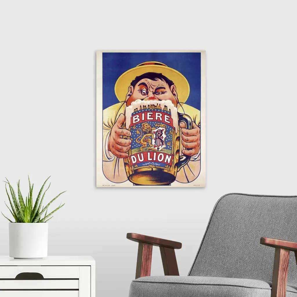 Biere du Lion - Vintage Beer Advertisement wall art for home and office decor. Discover canvas art prints, photos, mural, big canvas art and framed wall art in GreatBigCanvas.com's varied collections.
