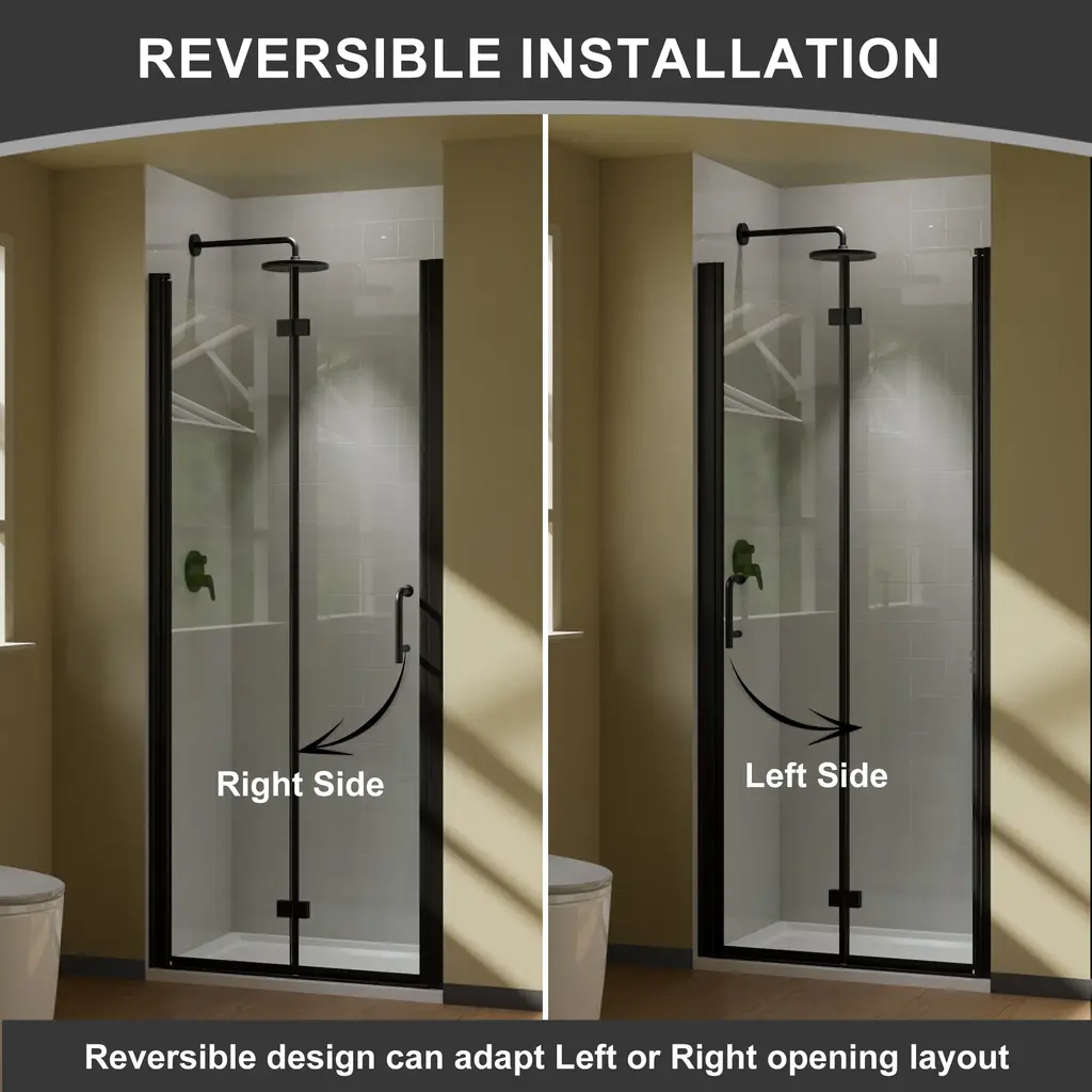 Bifold Semi-Frameless Shower Door With Clear Glass - 36 In. W X 72 In. H - Black