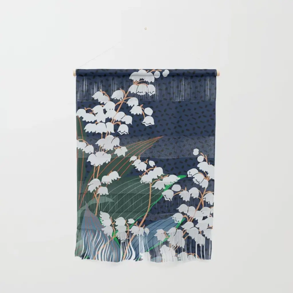 Big Flowers Lily Of The Valley Dark Denim Wall Hanging