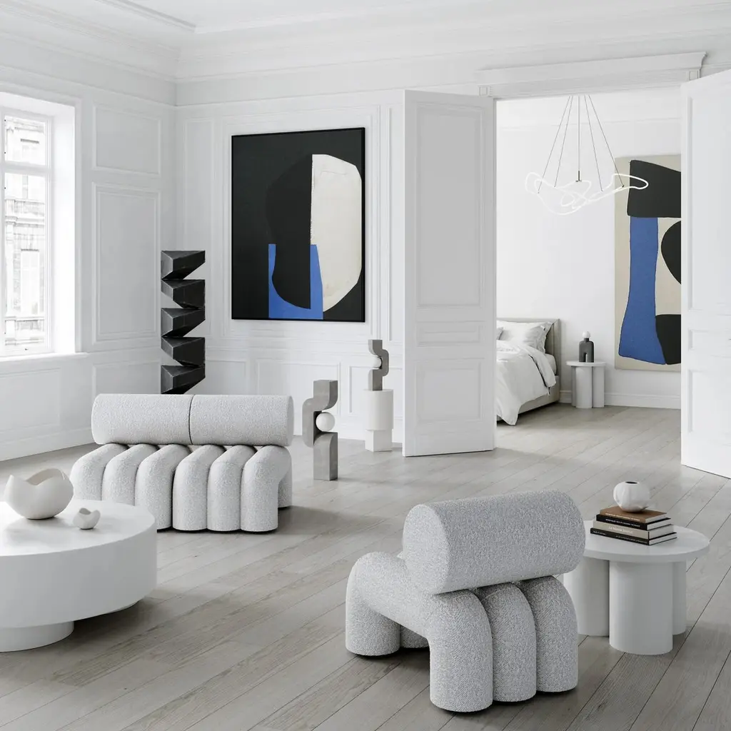 Big Foot Table tall, side table, end of sofa, design of a modern sculpture in concrete and fibre, contemporary work.Big Foot Table tall is made from concrete and fibre. It is inspired by Brutalist architecture and contemporary sculpture. Big Foot tables are available in two exquisite colours: white or coffee.A contemporary creation of fine quality.Colour: WhiteMaterial: Fibre Concrete Dimensions: L: 45 cm, W: 45 cm, H: 51 cmProduct weight : 12,8 Kgs