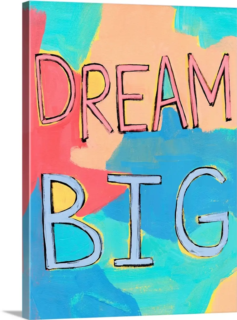 Big Happy Dreams Bright Multi-Color Block Lettered, Canvas, 30"x40"
