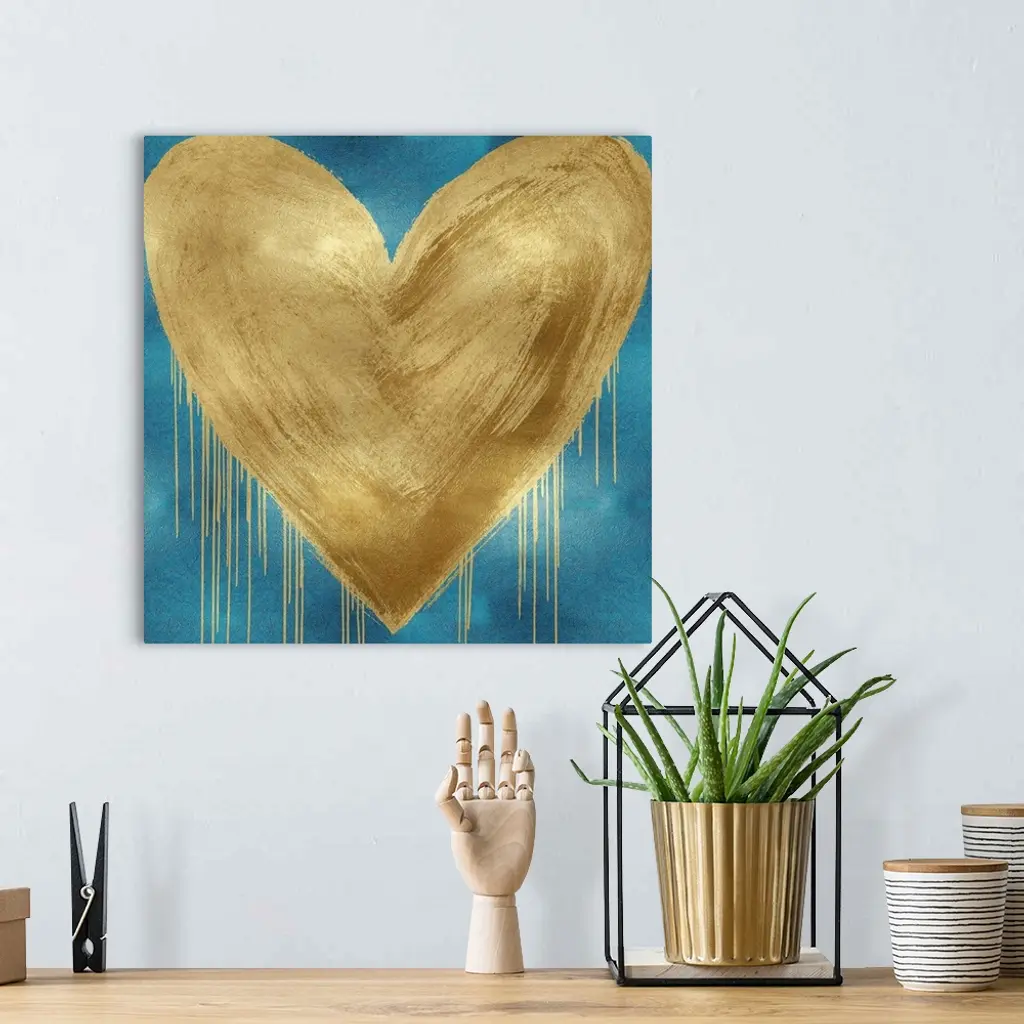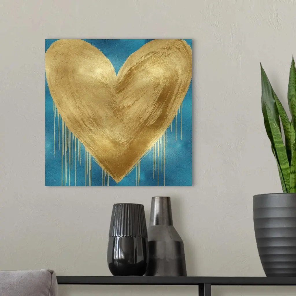 Big Hearted Gold on Aqua wall art for home and office decor. Discover canvas art prints, photos, mural, big canvas art and framed wall art in GreatBigCanvas.com's varied collections.