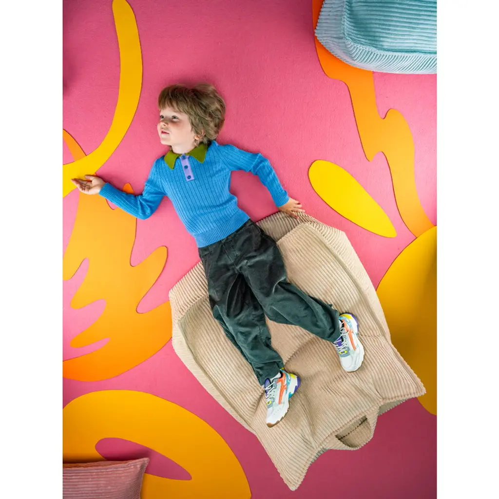 Wigiwama's Big Lounger beanbag brings a cozy yet playful feeling to the kids' room or the living room. The large beanbag chair is upholstered in removable corduroy fabric made from recycled PET bottles – so the beanbag is giving a new life to plastic that has already been used! Specially designed for kids, Big Lounger is filled with polystyrene, which gives it a soft feel but keeps it in a firm and sturdy shape even during longer times of relaxation.