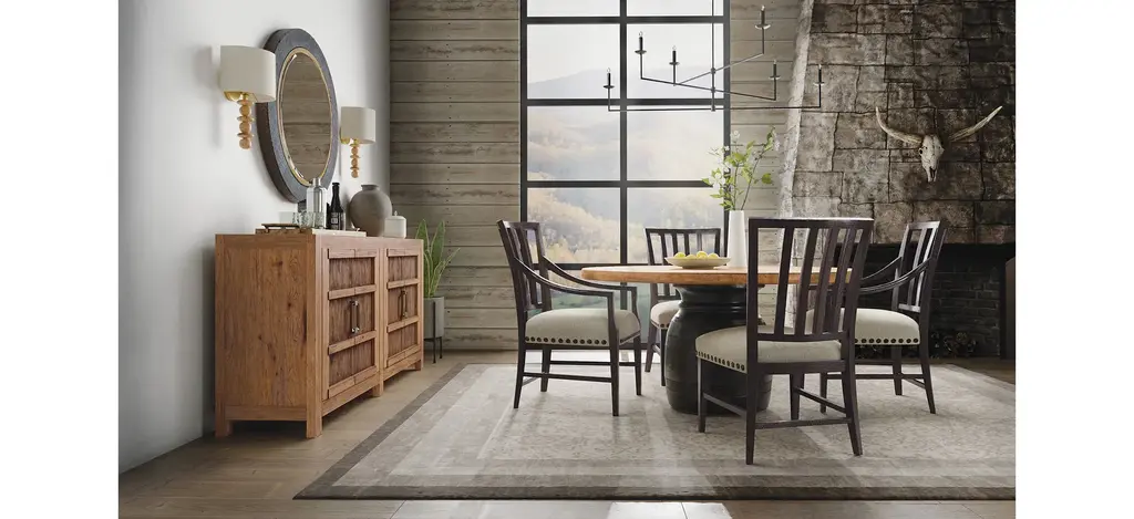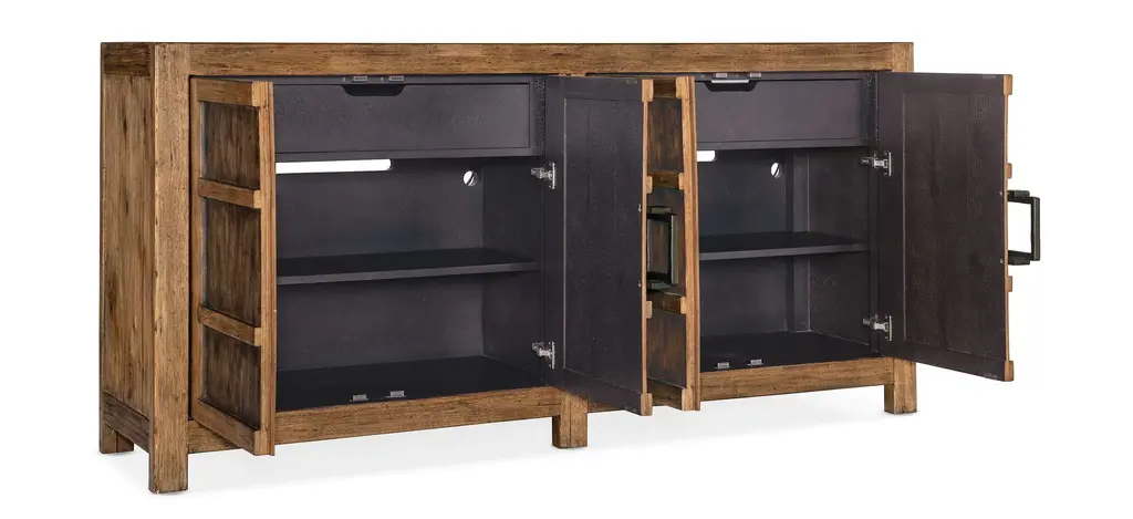 Warm and rustic with a silhouette that evokes the weight, heft and heritage of beam construction, the Big Sky Buffett is finished in vintage natural, an organic finish that reveals the authentic knots and wood grain patterns. The interior is finished in charred timber, inspired by the restorative beauty of a fire-ravaged forest.