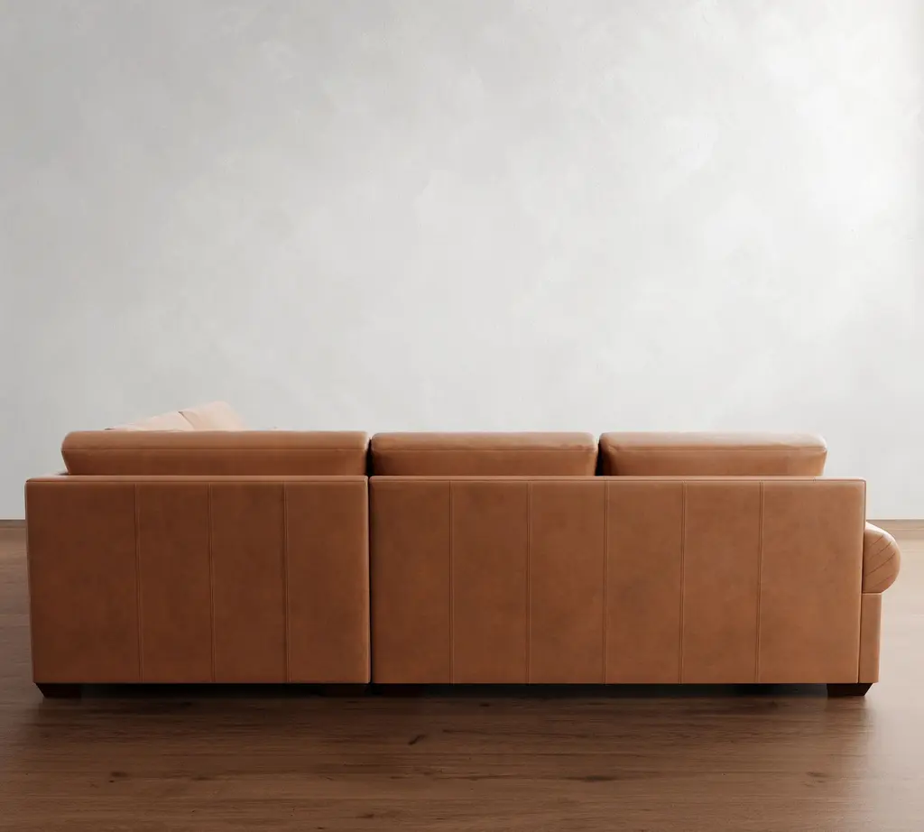 Big Sur Roll Arm Deep Seat Leather 3-Piece Sectional (122")