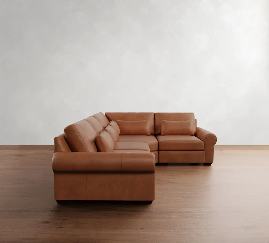 Big Sur Roll Arm Deep Seat Leather 3-Piece Wedge Sectional (130")