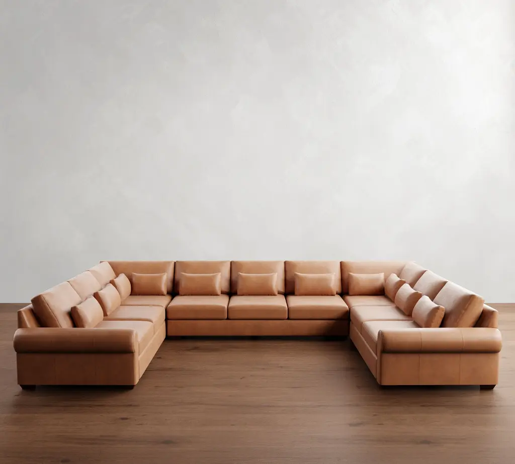 Big Sur Roll Arm Deep Seat Leather U-Shaped Sectional (159"–191")