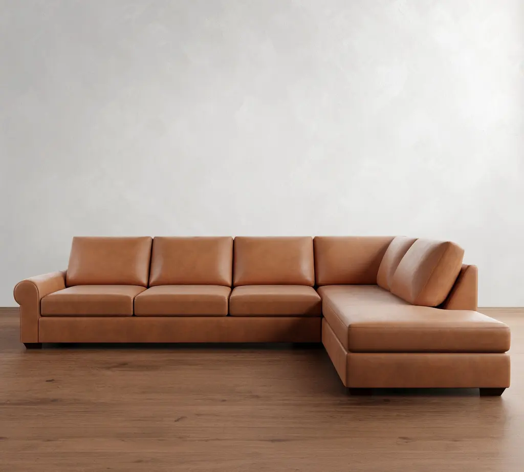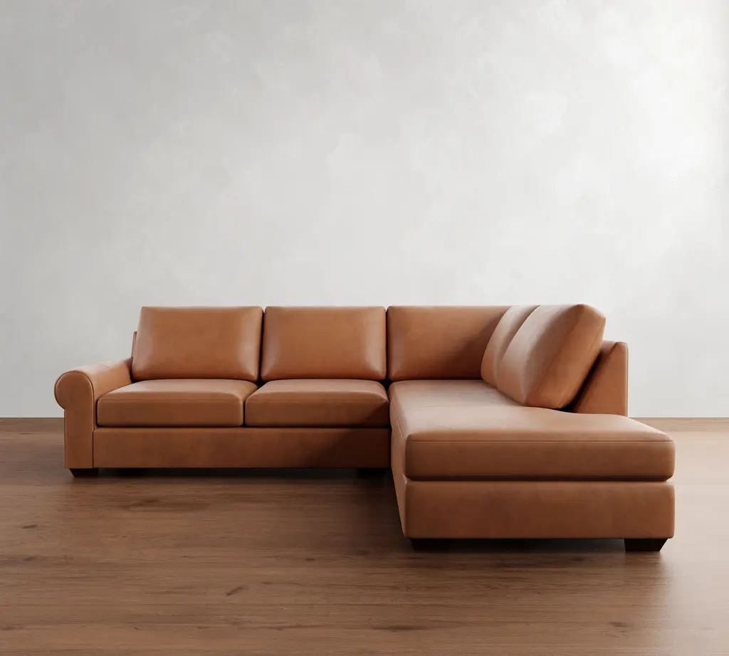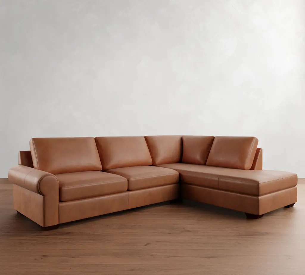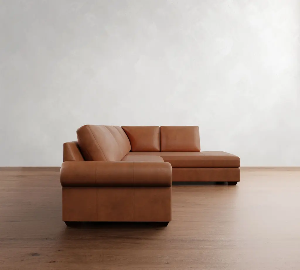 Big Sur Roll Arm Leather Return Bumper Sectional (115"–148")