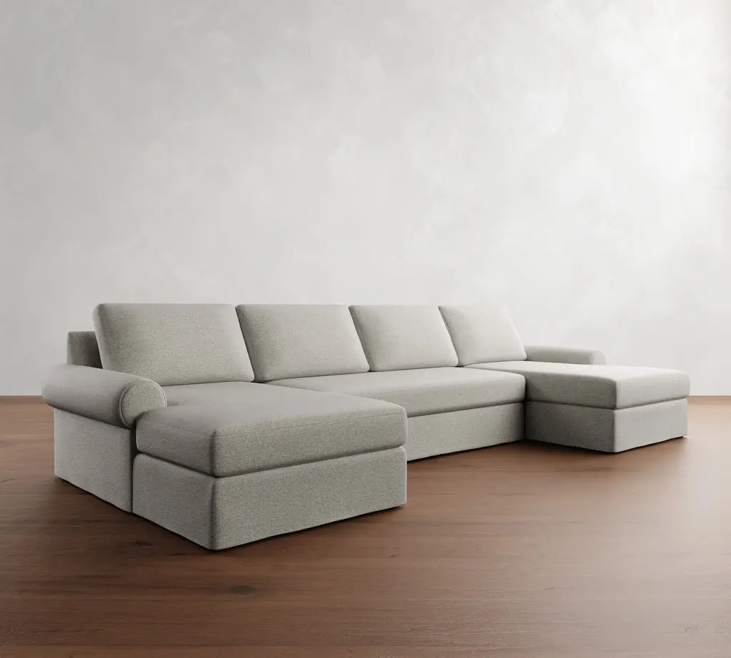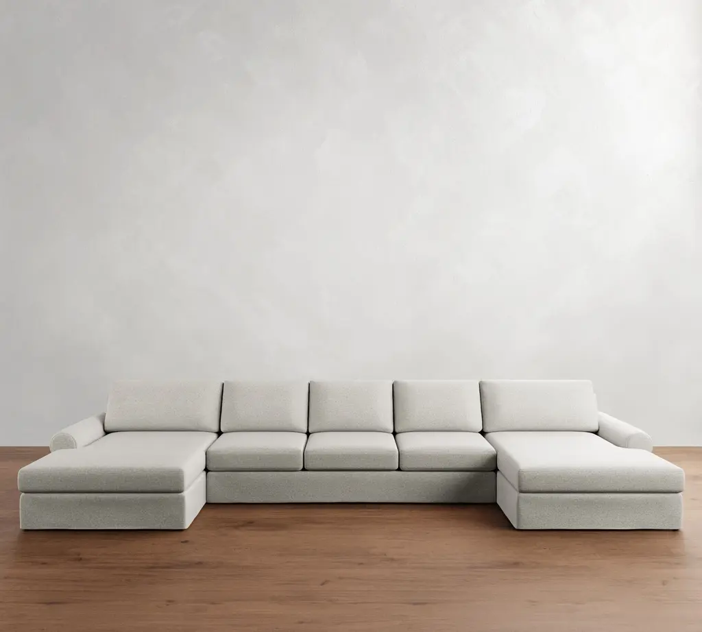 Big Sur Roll Arm Slipcovered Double Chaise Sectional (145"–198")