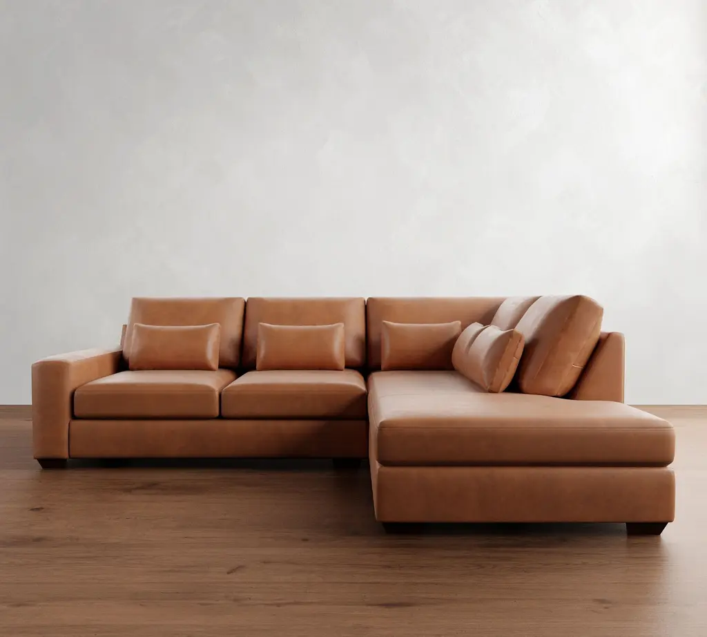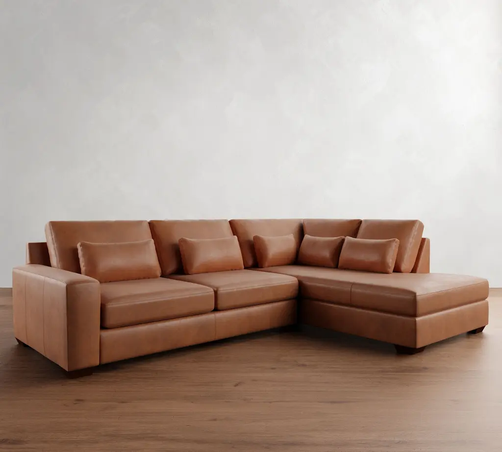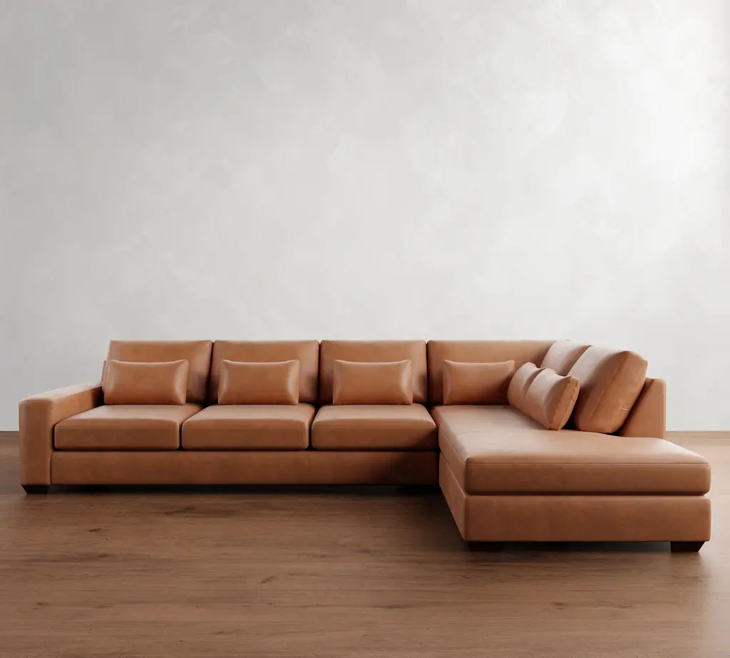 Big Sur Square Arm Deep Seat Leather Return Bumper Sectional (121"–153")