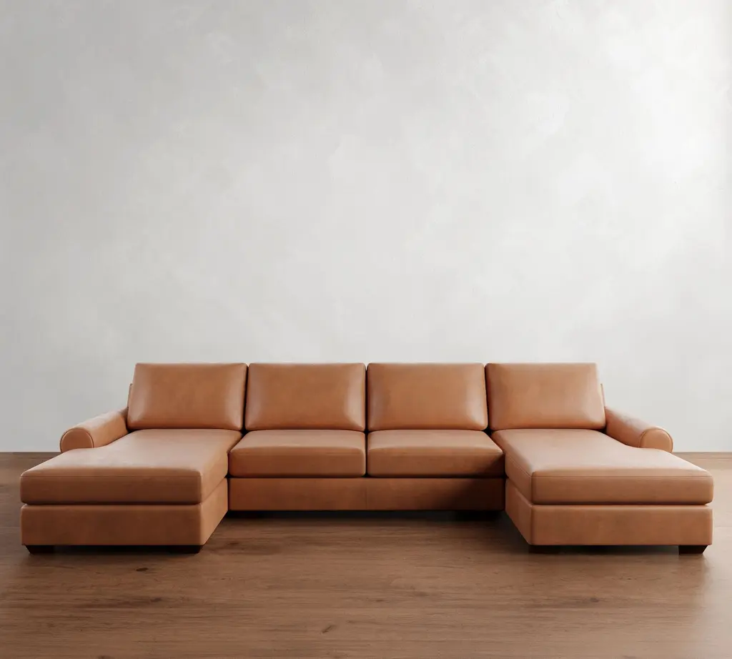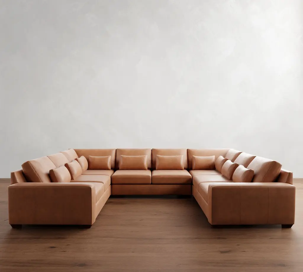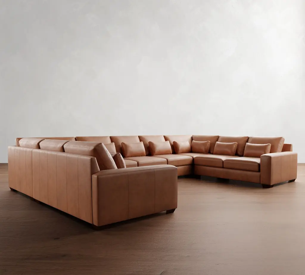 Big Sur Square Arm Deep Seat Leather U-Shaped Sectional (159"–191")