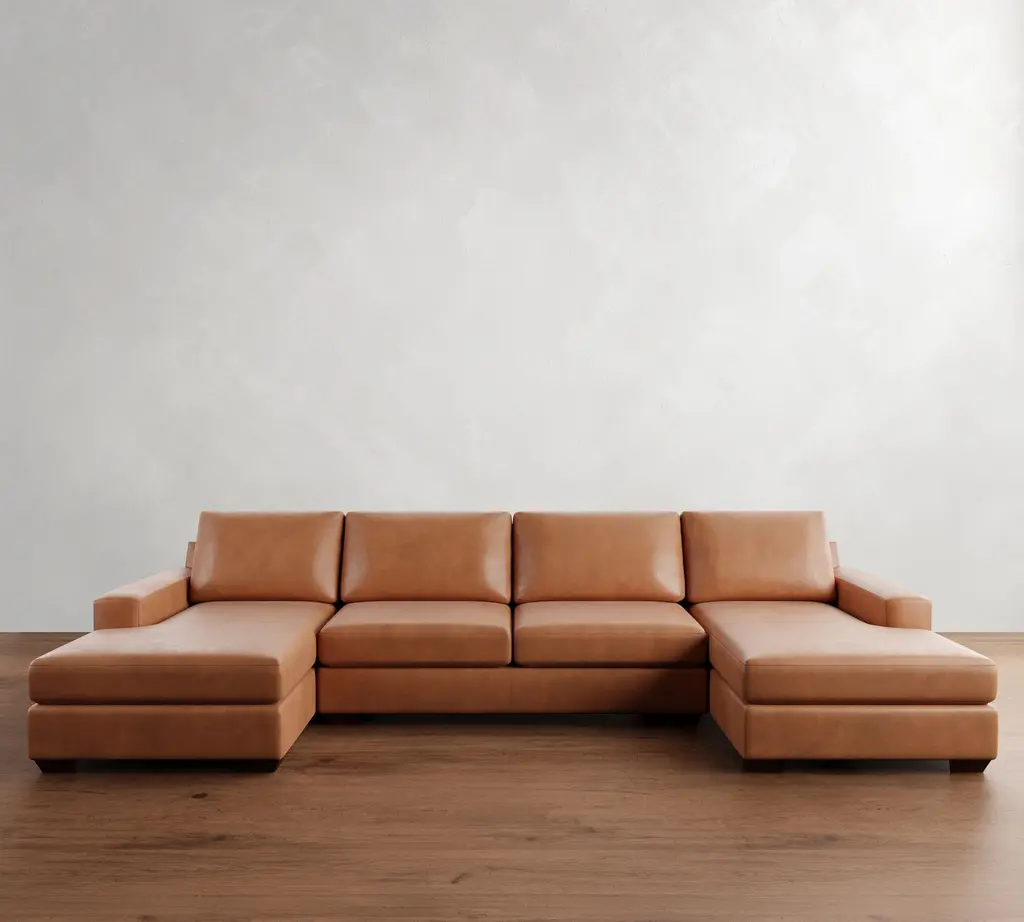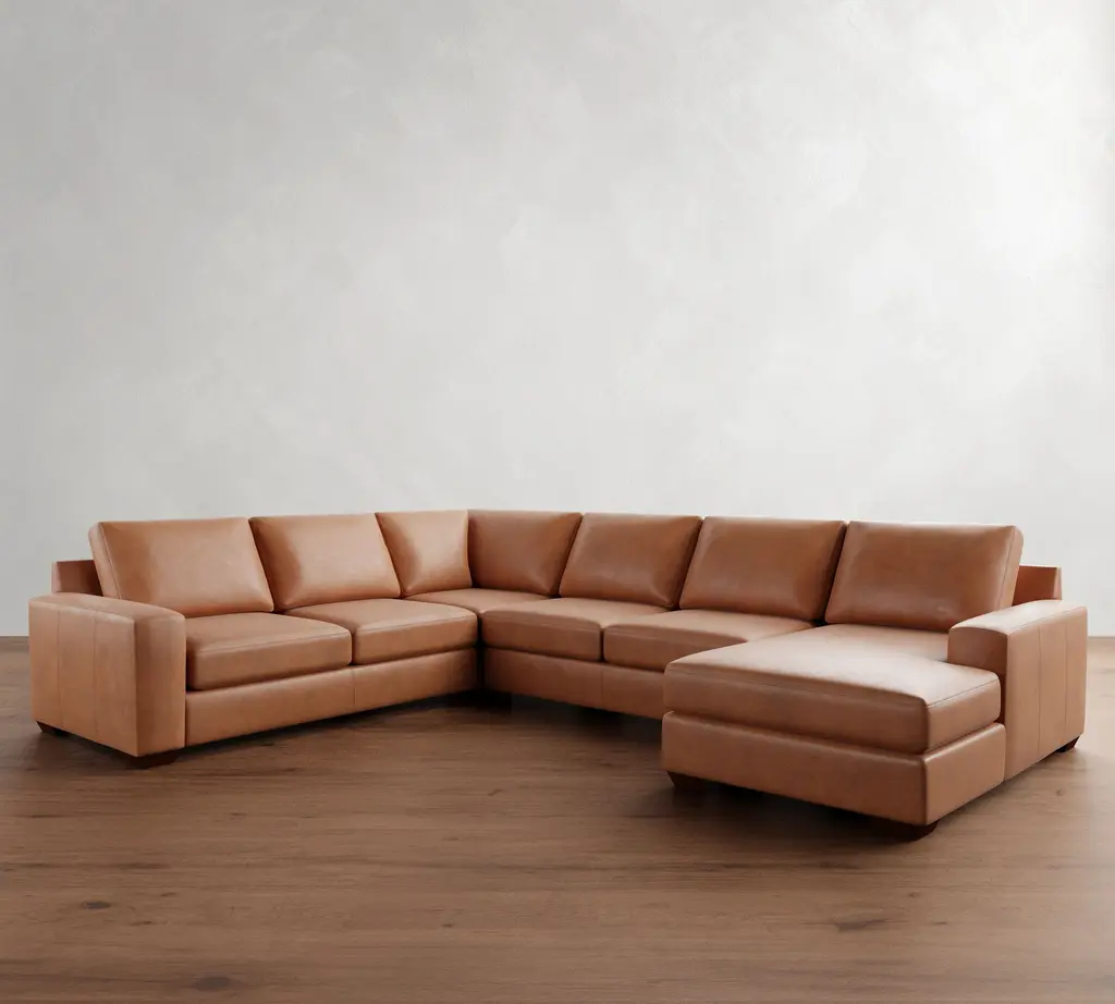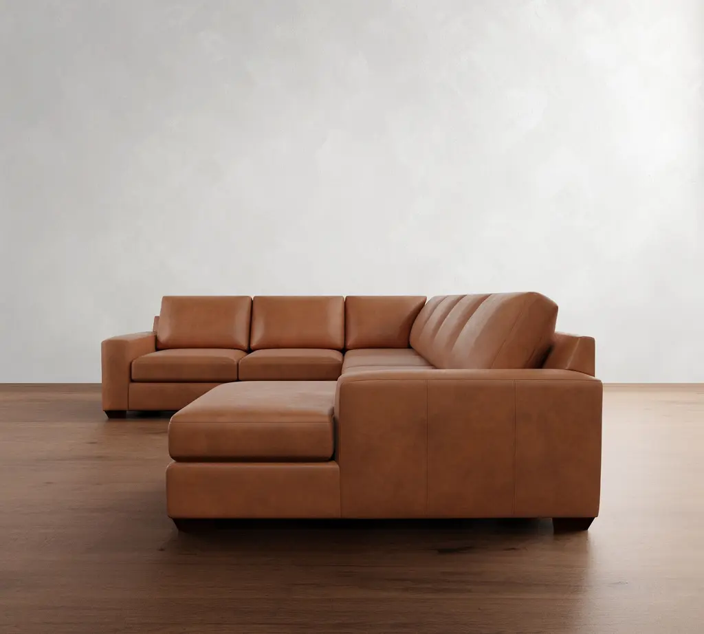 Big Sur Square Arm Leather L-Shaped Chaise Sectional (146")