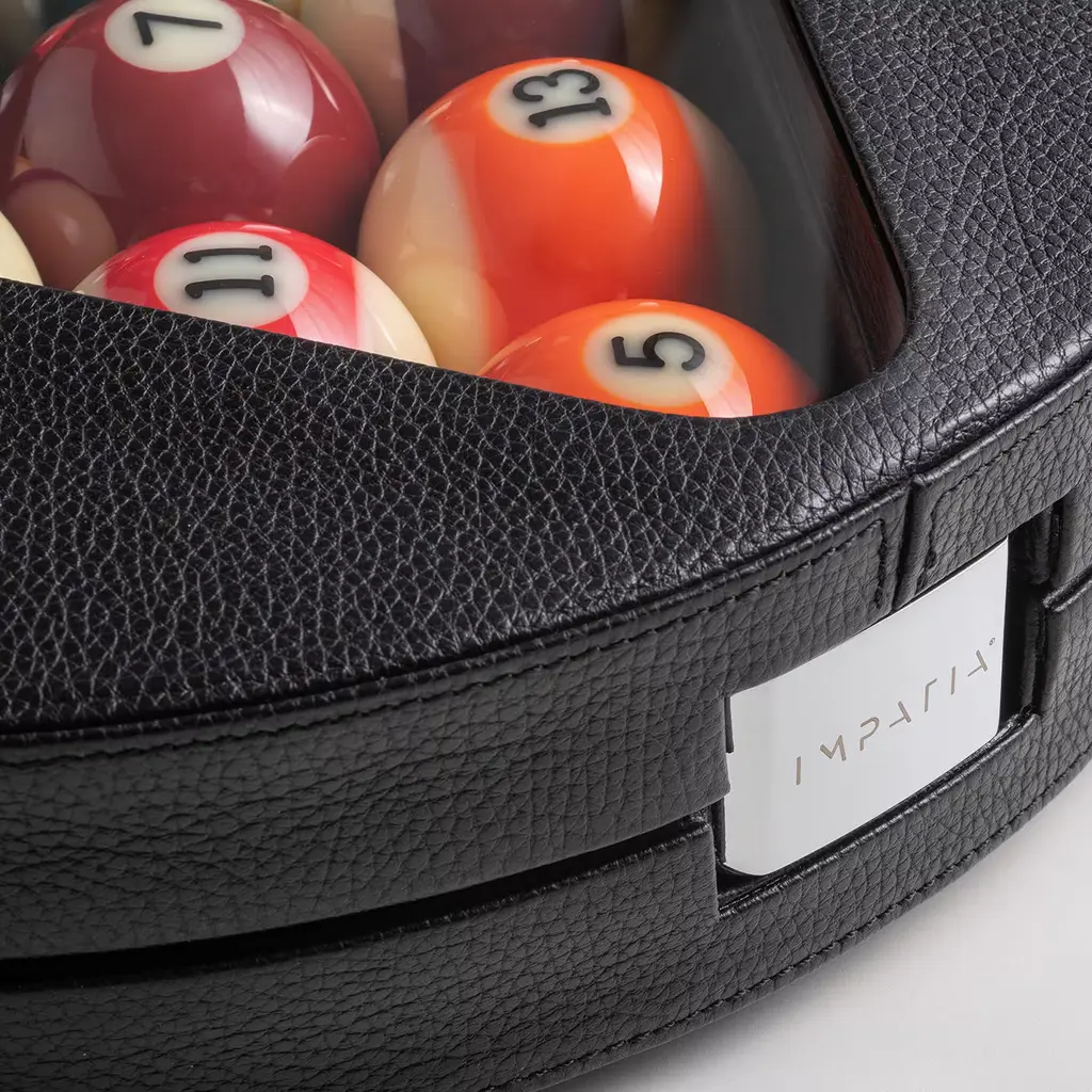 This sophisticated billiard game set delivered in a luxe circular case upholstered in fine black leather makes for a superb gift idea for collectors. Also available in other nine color options, the set was meticulously handcrafted and flaunts an artisan design that is sure to enrich any game collection. It comes with a leather triangle and a set of 15 billiard balls.