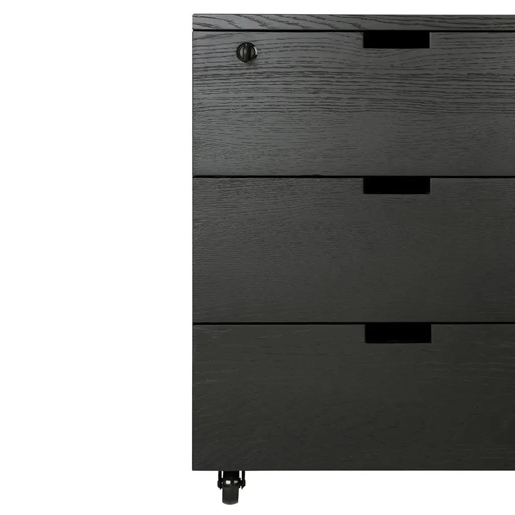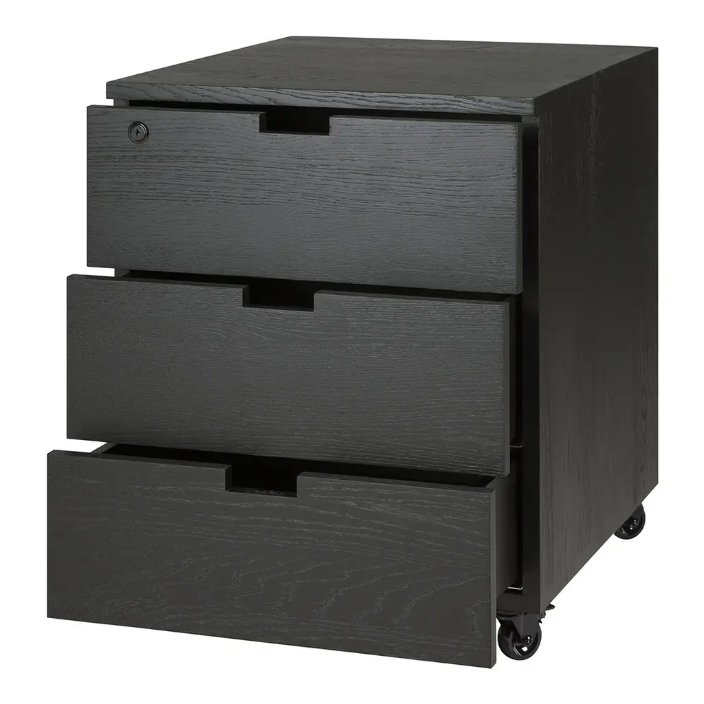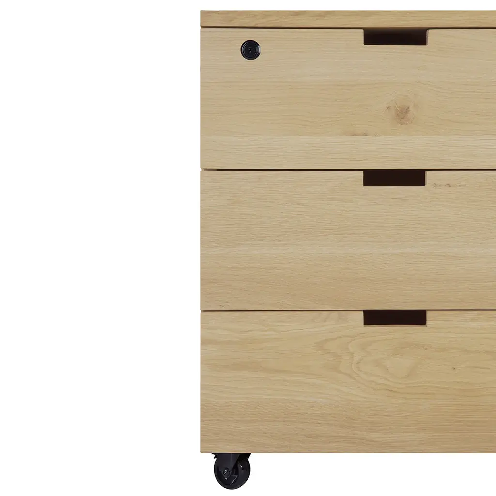 Organise your work space with the Billy drawer unit in solid oak. It features three soft-closing drawers and easy access thanks to the handy wheels. On its own or under a desk, it is the simple staple every office needs.