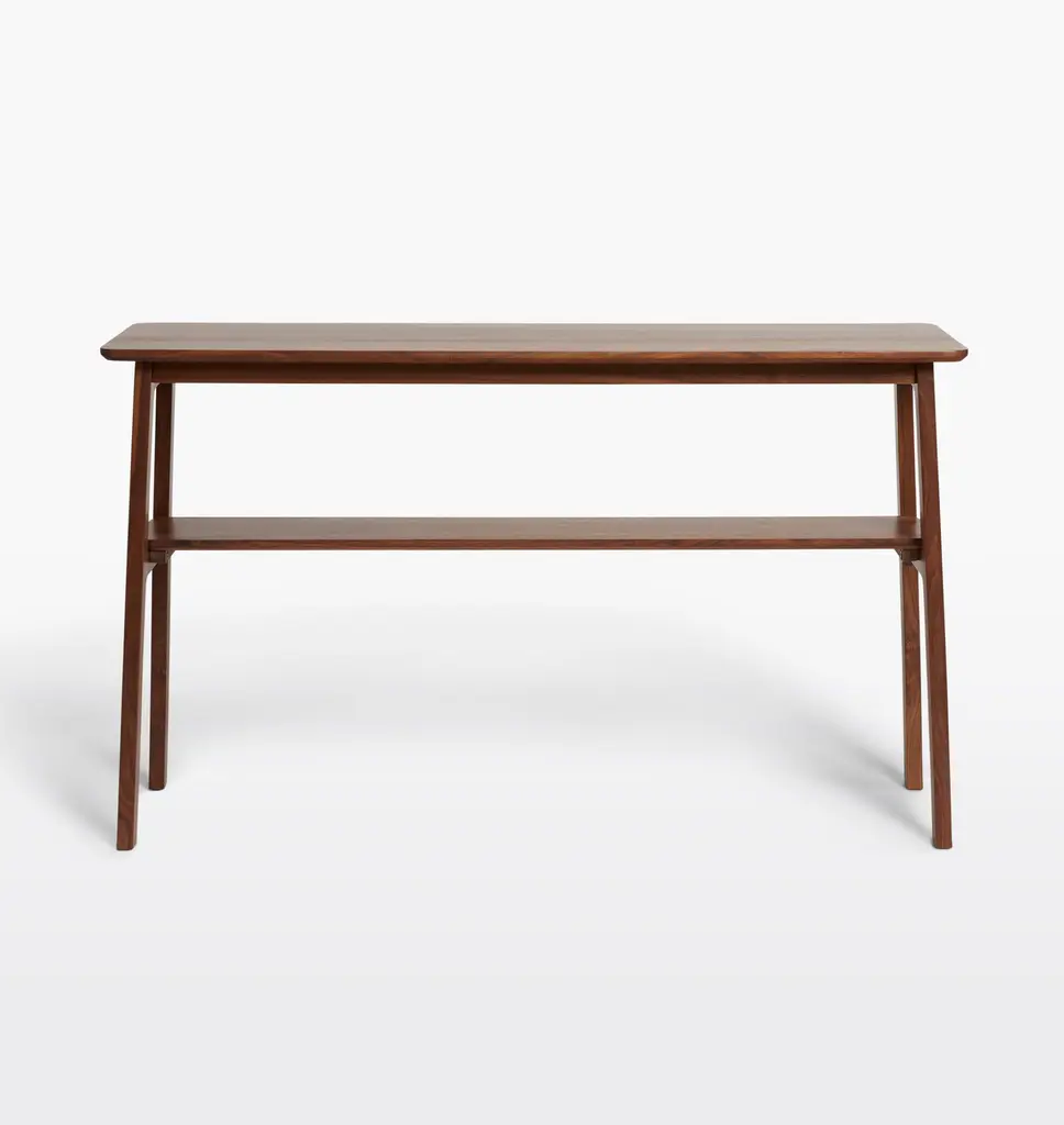 Add farmhouse-inspired style to your home with our Bilquist Console Table. Crafted from solid walnut with a larger lower shelf for easy storage. Pair it with our Bilquist Coffee Table and Bilquist Side Table for a complete look.