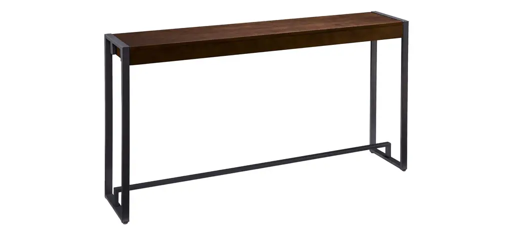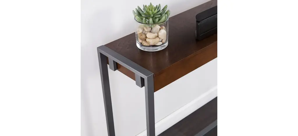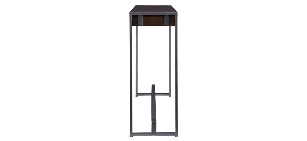 The Bingham Console keeps life simple yet makes a bold statement with mixed materials and an industrial vibe. Flexible to fit your style and put it on display. Warm up small spaces with the reclaimed look of dark tobacco, while contrasting gunmetal gray gives this narrow console table a firm leg to stand on.
