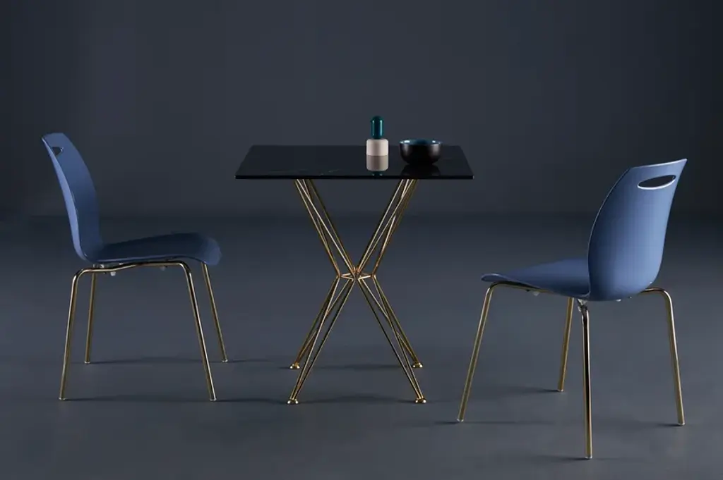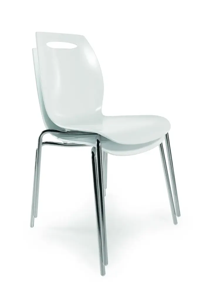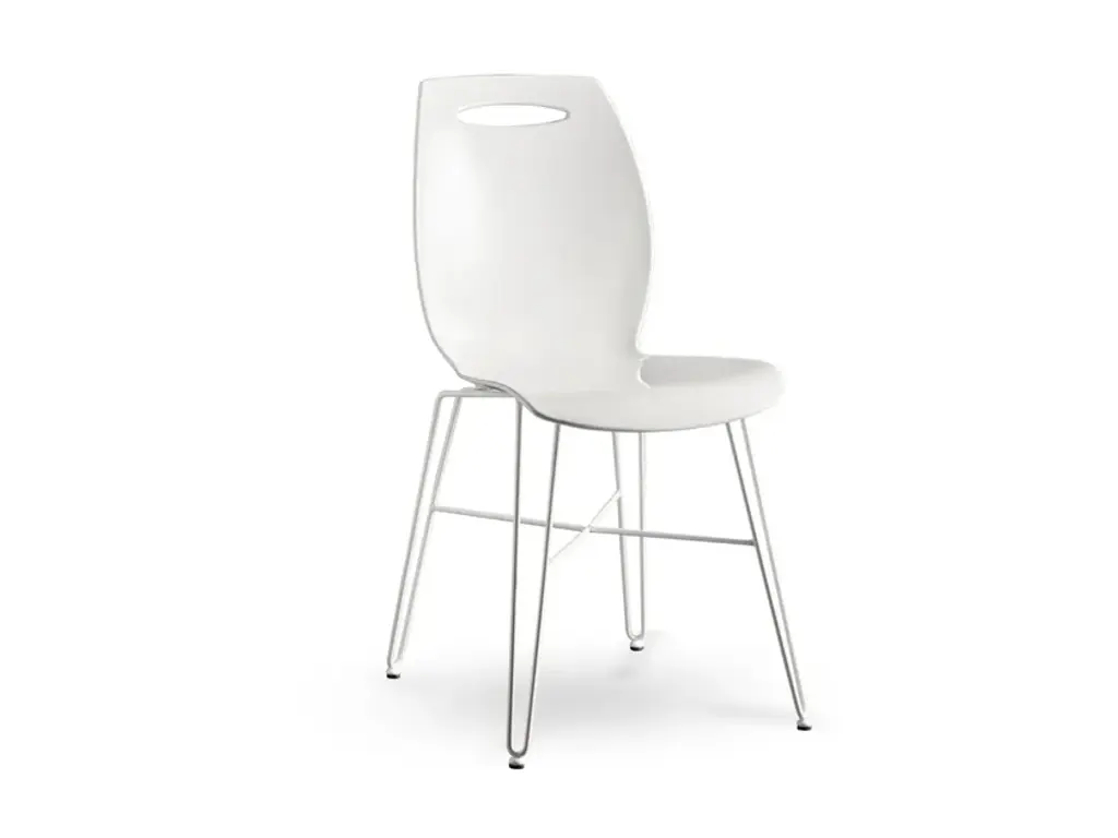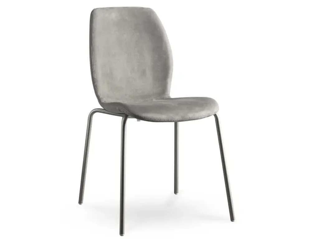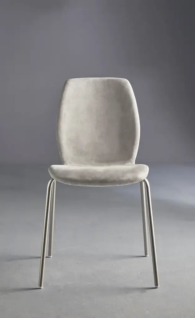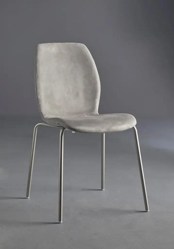 Bip is a stackable chair with painted or chrome-plated steel frame; its seat, made of recyclable composite technopolymer, can be upholstered with fabric or artificial leather.Comfortable and easy to handle, Bip chair was born as a proposal for smart environments and its use is mainly linked to the kitchen space. In its coated version it transforms acquiring charm and taste with a retro chic flavor and elevating itself to more refined contexts.
