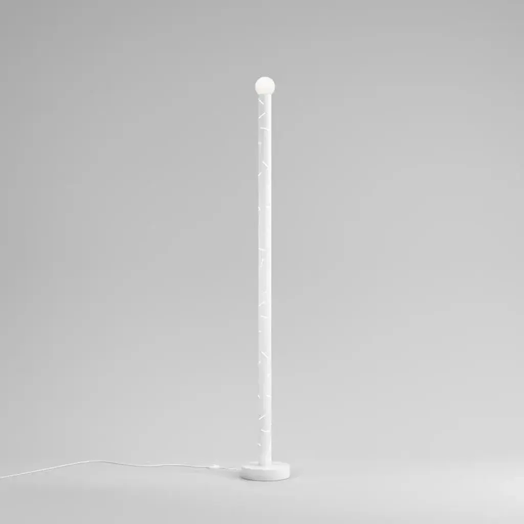 Birch Floor Light by Atelier Areti Dimensions: D 25.5 x H 193 cm. Materials: White powder-coated metal, white glass. Up to 250V (Europe/UK Standard).