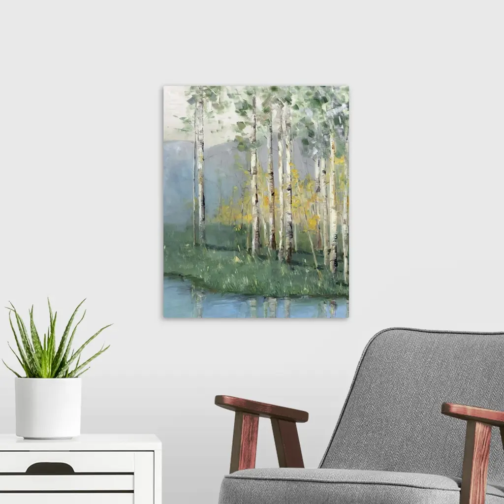 Birch Reflections II wall art for home and office decor. Discover canvas art prints, photos, mural, big canvas art and framed wall art in GreatBigCanvas.com's varied collections.