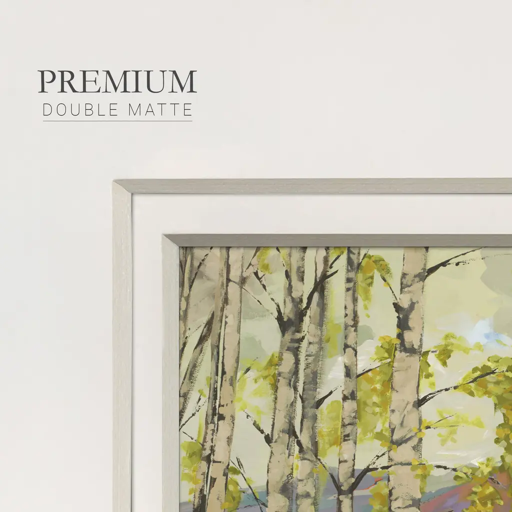 Birch StandPremium Framed Print A framed cold pressed paper print featuring superior double matting and quality frame. 2 SIZES AVAILABLE 16''X16''' - Overall Size 20''X20''' - Overall Size Each piece is made to order. Each piece comes with hanging hardware. Made in the USA Ready to Hang Giclee Paper Print Plexiglass Beveled Matt Board Double Matte Board