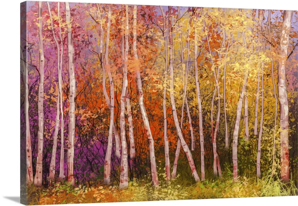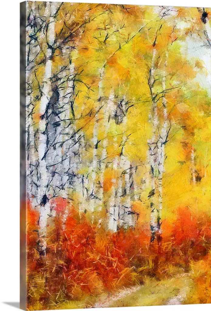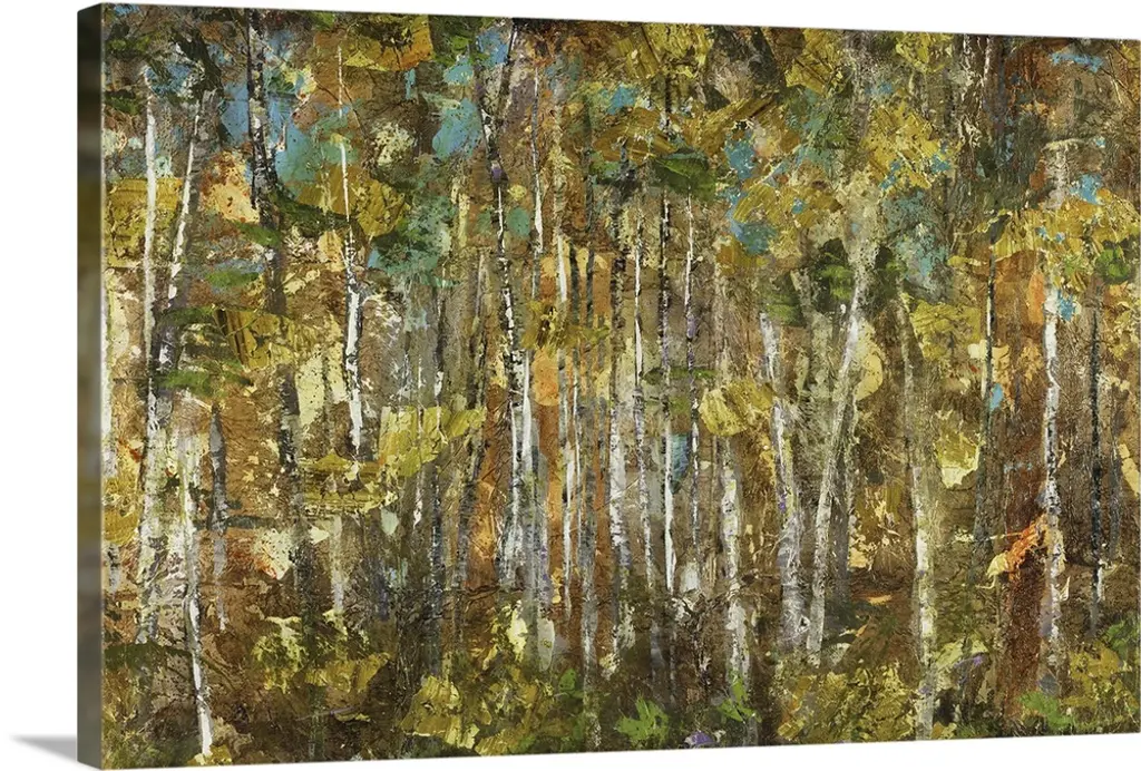 The birch trees in this print almost look golden against the blue background. Our Gallery Wrap Canvas Prints are proudly assembled with high quality materials in California, USA. Each piece is printed on a thick, archival grade canvas using Giclee technology. It is then hand-stretched by our experienced artisans over solid pine bars, which will not warp over time. The final product is a piece personally crafted for you to confidently display on your wall. Care and Assembly: Ensure that the location of your piece has little to no exposure to heat, sunlight, and moisture. Wipe clean, only if needed. Each piece includes a sawtooth hanger to hang on your wall horizontally.