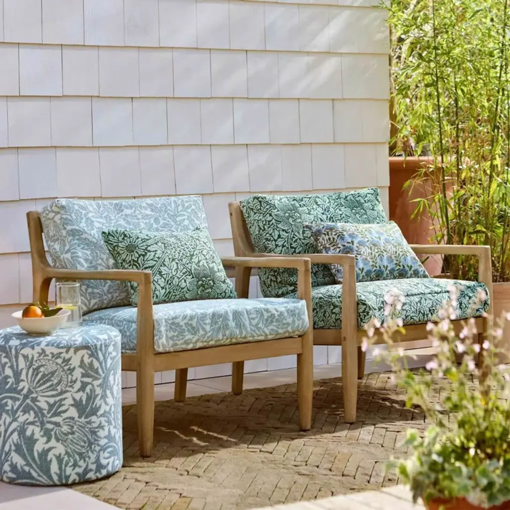 Originally a monochrome precursor to Morris' much-loved strawberry thief this evocation of the English hedgerow from 1882 features thrushes in a vertical entwine of flowers and foliage. Bird and anemone weave delights in this same charming entanglement but with the added tactility of a robust and chunky weave. Perfect for the outdoors which it so wonderfully represents.